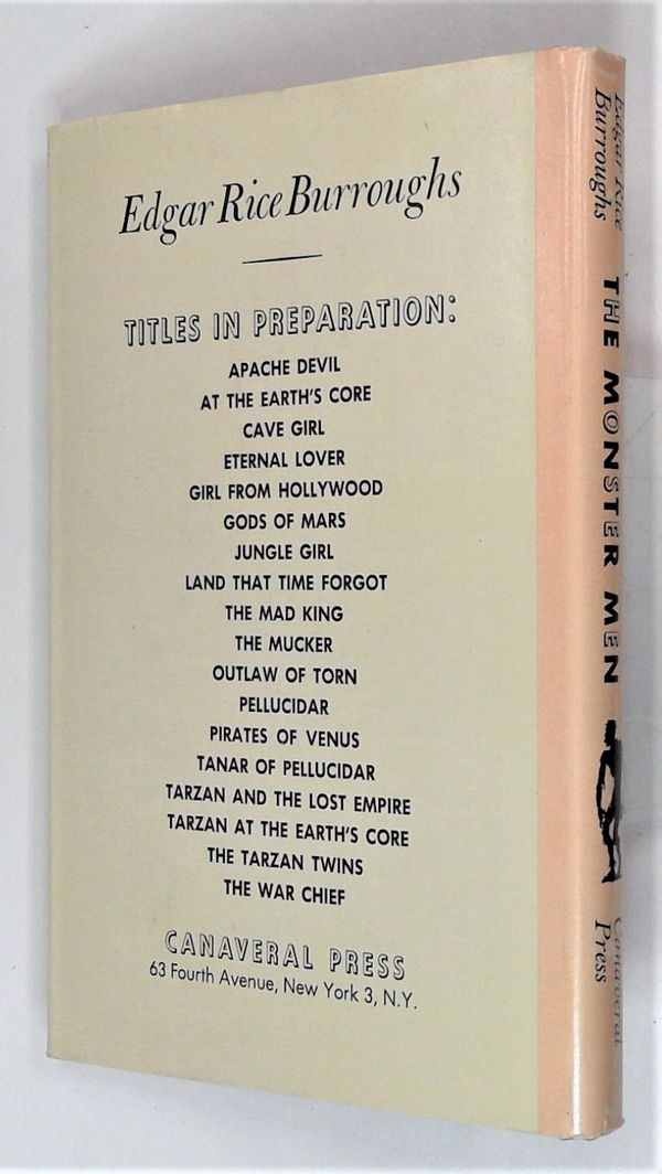 Published Jan 1962 by Canaveral Press.$115.001st Canaveral printing. Written by Edgar Rice Burroughs. Art by Mahlon Blaine. A scientist attempts to create the perfect human being using super science and outlaw experiments. With "Experiment #13" he succeeds, or so he thinks. Will the failures of twelve previous tries come back to haunt him? Sit back and enjoy a classic cautionary tale from the pulp era of adventure as told by a true science fiction master Edgar Rice Burroughs. Hardcover, 5 1/2-in. x 8-in., 188 pages, Text (with B&W Chapter Illustrations). Cover price $2.75.