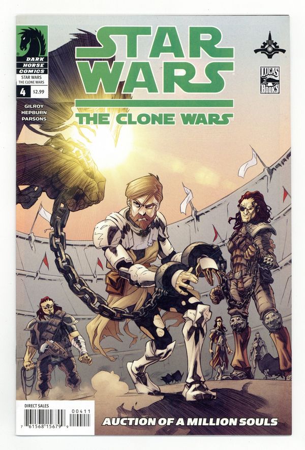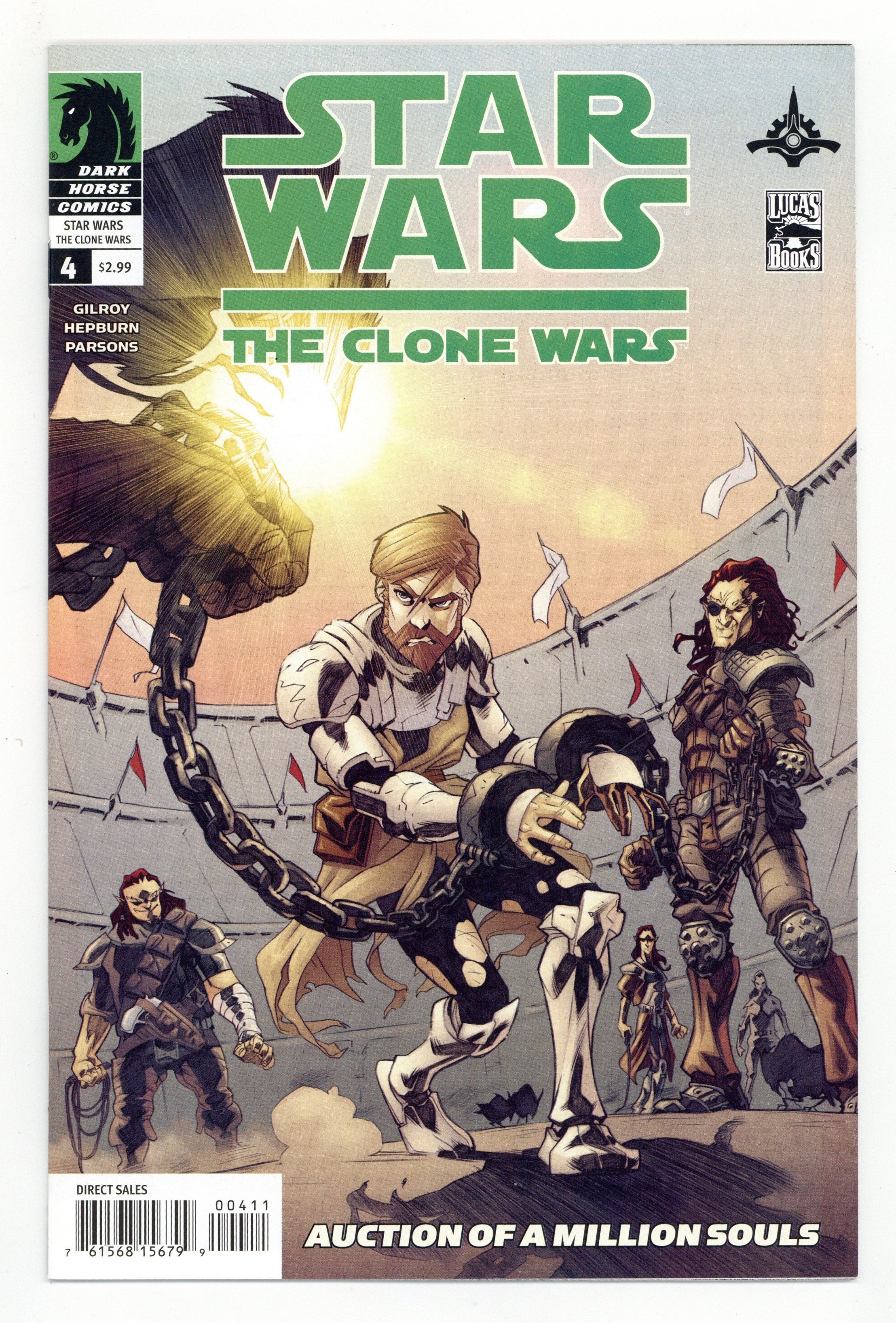 Henry Gilroy (W), Scott Hepburn (P/Cover), Dan Parsons (I), and Michael Wiggam (C) Anakin Skywalker goes undercover as a slave trader-and Ahsoka is his slave! Fearing that the entire population of the planet Kiros may have been forced into slavery, the team has traveled to the Zygerria system to attend the first slave auction in years. Anakin must work his charm on the Queen of Zygerria, while 'slave' Ahsoka and 'slave traders' Rex and Obi-Wan search for clues. Can our heroes pull off this incredible deception? Plus a backup story by one of the artists from the TV series! FC, 40 pages Cover price $2.99.