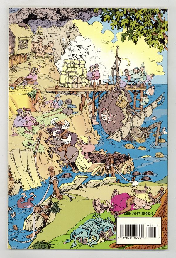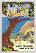 Volume 1 - 1st printing. Story by Mark Evanier. Art by Sergio Aragones. Wraparound cover by Sergio Aragones. Sword and sorcery comedy from Sergio Aragones, as Groo's skill with the sword is only exceeded by his stupidity, making him dangerous to friend and foe alike. The second Groo graphic novel presents the life story of the obtuse adventurer, showing that his propensity for destructive chaos started during the earliest years of his life. A small print run for this edition prompted an outcry from Groo fans, resulting in the Graphitti Designs reissue two years later. Followed by Groo (1994 Image) #1. 64 pages, Full Color. Cover price $8.95.