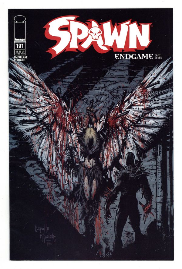 Jim continues to seek clues to his missing identity, but each answer only brings more questions. The information he manages to discover about himself and his past life is far from comforting. Meanwhile, the Spawn entity dwelling inside Jim starts to exert its dominance over its host, and Jim finds himself becoming addicted to the power. Brought to you by TODD McFARLANE (story/inks), WHILCE PORTACIO (pencils) and GREG CAPULLO (cover). Cover price $2.95.