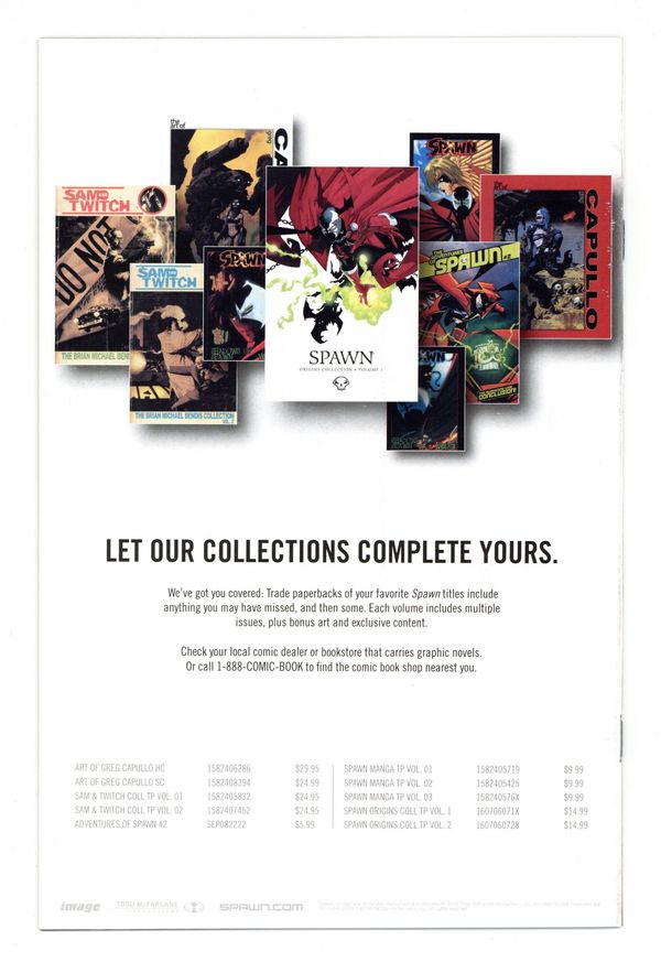 $34.50Jim continues to seek clues to his missing identity, but each answer only brings more questions. The information he manages to discover about himself and his past life is far from comforting. Meanwhile, the Spawn entity dwelling inside Jim starts to exert its dominance over its host, and Jim finds himself becoming addicted to the power. Brought to you by TODD McFARLANE (story/inks), WHILCE PORTACIO (pencils) and GREG CAPULLO (cover). Cover price $2.95.