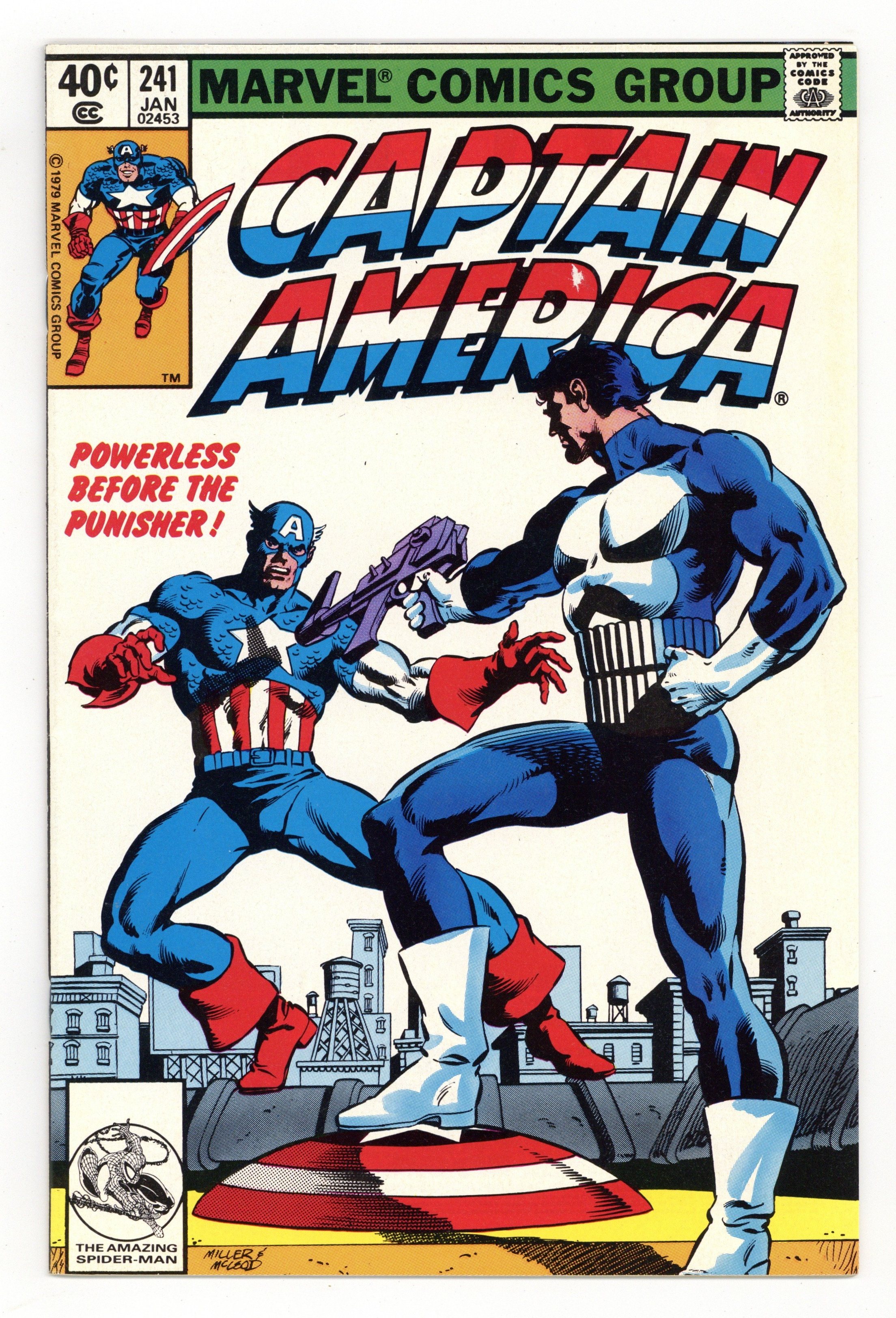 $16.501993 reprint available only through JC Penney. "Fear Grows in Brooklyn!" Guest-starring the Punisher. Story by Mike W. Barr. Art by Frank Springer and Pablo Marcos. Cover by Frank Miller. Steve Rogers meet Frank Castle. Two very different soldiers tasking on the mob in two very different ways. Yeah, this will end well. Captain America meets the Punisher! 32 pages, FC. NOTE: Has low print run. Can be identified by having Spider-Man with the words THE AMAZING SPIDER-MAN printed in the UPC box. Cover price $0.40.