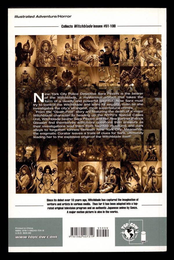 A flagship character. A wealth of talent. An unbelievable value. Now's your chance to get caught up on Witchblade with 50 issues contained in this monster collection! The Witchblade property is on fire with a new movie in the works and the tremendous work currently being done on the series by the creative team of Ron Marz (Samurai: Heaven and Earth) and Stjepan Sejic (First Born). This is an absolute must-have for fans and new readers alike!