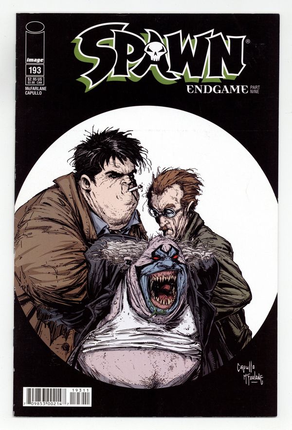 $37.50Written by TODD McFARLANE. Art and cover by GREG CAPULLO. SPAWN #193 packs a powerful punch: Fan-favorite artist GREG CAPULLO returns as guest artist, bringing his inimitable style to a story arc which includes three characters he is passionate about drawing. SPAWN creator TODD McFARLANE incorporated a one-issue encounter between three of Capullo's favorite characters: detectives Sam and Twitch, who he's perfected during his previous work on SPAWN, and the ultimate personification of evil, the Clown. McFARLANE brought the three characters face-to-face for an ominous meeting that will leave fans ravenous for the next issue. 32 pages, full color. Cover price $2.95.