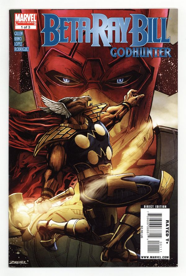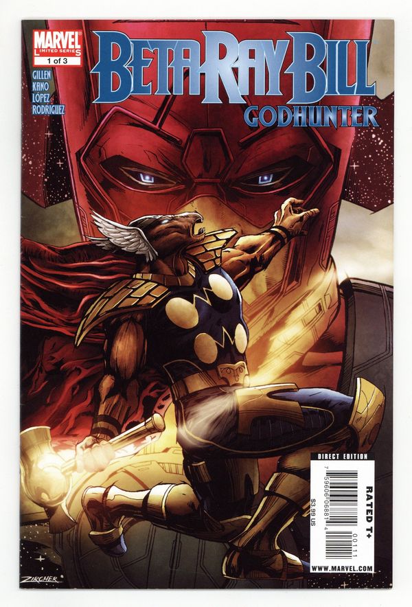 Written by KIERON GILLEN. Art by KANO. Cover by PATRICK ZIRCHER. Galactus! He's devoured worlds since the dawn of the universe. Consuming the Korbinites' home was nothing special. But for Beta Ray Bill - oathbrother to Thor and the Korbinites' defender - it was a failure of his life's duty...and has given him a certain clarity. How can a hero suffer such a threat to his existence? Beta Ray Bill sets forth to hunt down Galactus, force him to his knees and make him pay - with a plan so audacious even the Planet Eater will feel fear... 40 pages, new material and reprints, Full color. Cover price $3.99.