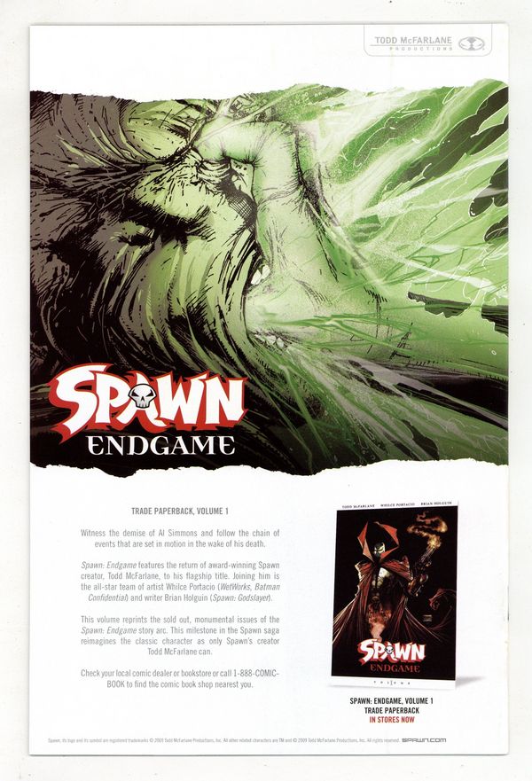 $46.00story TODD McFARLANE art WHILCE PORTACIO & TODD McFARLANE cover GREG CAPULLO JULY 22 32 PAGES / FC $2.95 'Endgame,' Part Ten Get ready for Violator vs. Spawn! Violator returns to have his first encounter with the new Spawn. Meanwhile, the Clown continues to manipulate from behind the scenes. Cover price $2.95.