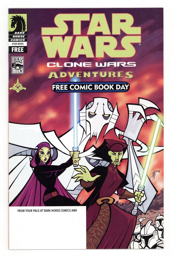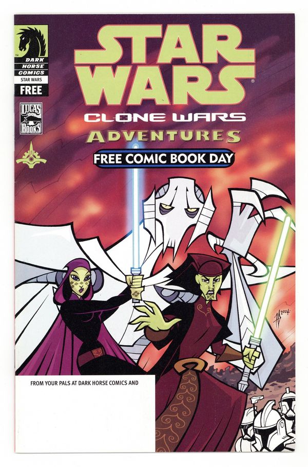 Published Jul 2004 by Dark Horse.$16.00Free Comic Book Day 2004 Special. Full color, 28 pages, slick paper stock. Hide in Plain Sight. Luminara and Barriss set a trap for the Confederacy forces at the Battle of Nadiem. Written by Welles Hartley, with art by The Fillbach Brothers. Cover by The Fillbachs and Dan Jackson.