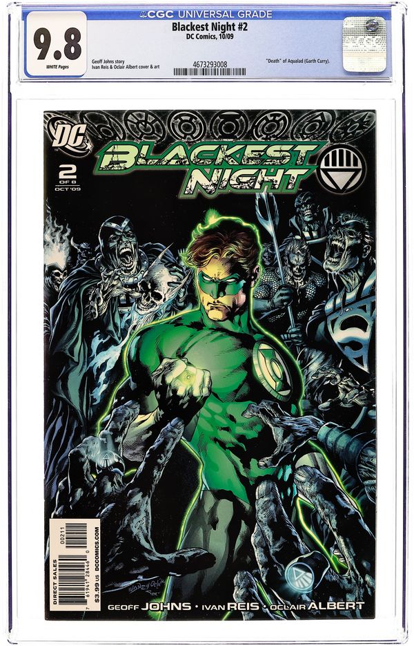 Cover by Ivan Reis and Oclair Albert. Written by Geoff Johns. Art by Ivan Reis and Oclair Albert. The event of the summer continues! The dead rise across the DC Universe, bringing terror and darkness with them. What are the Black Lanterns? What do they want? Will Earth's greatest heroes survive long enough to find out - or will they join the Black Lantern Corps? Plus: A 5-page preview of Superman Secret Origin (2009) #1 by Geoff Johns, Gary Frank & Jon Sibal. 40 pages, full color. Cover price $3.99.