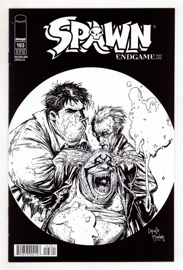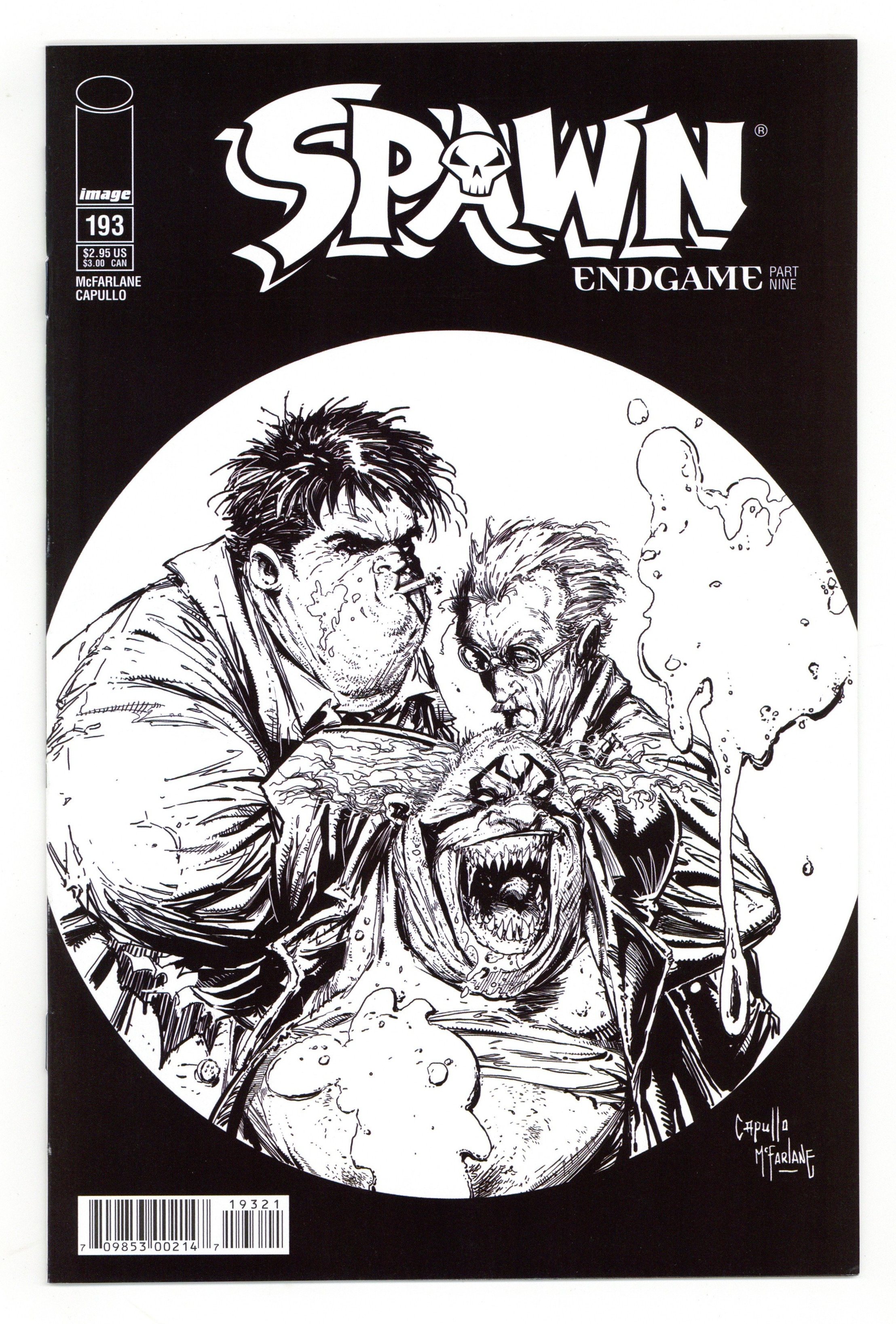 $40.00Written by TODD McFARLANE. Art and cover by GREG CAPULLO. SPAWN #193 packs a powerful punch: Fan-favorite artist GREG CAPULLO returns as guest artist, bringing his inimitable style to a story arc which includes three characters he is passionate about drawing. SPAWN creator TODD McFARLANE incorporated a one-issue encounter between three of Capullo's favorite characters: detectives Sam and Twitch, who he's perfected during his previous work on SPAWN, and the ultimate personification of evil, the Clown. McFARLANE brought the three characters face-to-face for an ominous meeting that will leave fans ravenous for the next issue. 32 pages, full color. Cover price $2.95.
