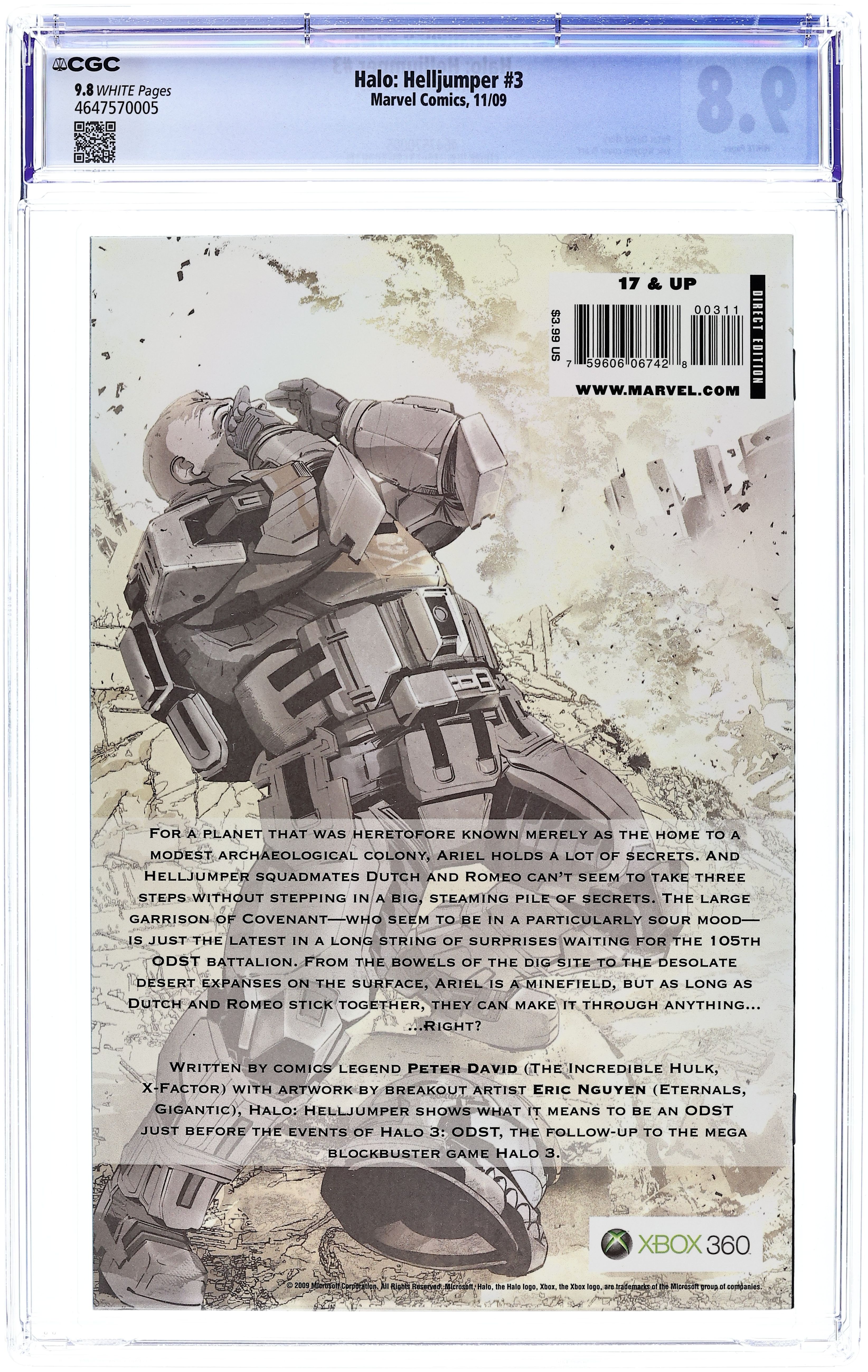 Written by PETER DAVID. Art and Cover by ERIC NGUYEN. Mysteries deepen as the Helljumpers' investigation of the curious events at the Space Colony Ariel continues. Cut off from the rest of their company, Dutch and Romeo must use every ounce of skill and strength to stay alive. But earth-shaking events--both physical and personal--will truly test the mettle of these two brothers-in-arms. 32 pages, full color. Cover price $3.99.