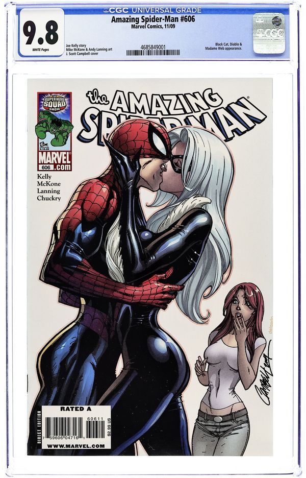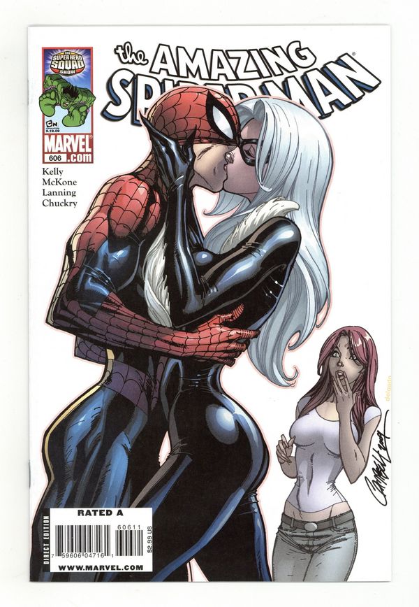 Tags: Marvel Legacy Numbering: Amazing Spider-Man (part 606), Spider-Man$80.00"Long Term Arrangement" Part 1 of 2 - Written by Joe Kelly. Pencils by Mike McKone. Inks by Andy Lanning. Covers by J. Scott Campbell. Look out, Spidey! Hot on the heels of his old girlfriend's trip home, The Black Cat's back (and front!), sexier and more dangerous than ever! The deck is stacked as the one woman that loves Spider-Man more than Peter Parker is up to some devilish shenanigans...and nothing bugs Spidey more than shenanigans! Brace yourself for danger, Spidey! It's gonna be ...umm...sexy? 36 pgs. Cover price $2.99.