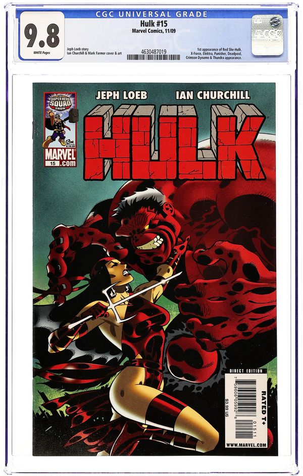 Cover by IAN CHURCHILL. CODE RED: Part 2 of 4 - Written by JEPH LOEB. Art by IAN CHURCHILL. The battle you've been waiting for: THE RED HULK VS. WOLVERINE. Plus: Deadpool! Elektra! Punisher! vs. X-Force! Plus: a tale of the colorful Hulks by Audrey Loeb & Dario Brizuela. All this and a shock ending that will have all of Marveldom twittering! 32 pages, full color. Cover price $3.99.
