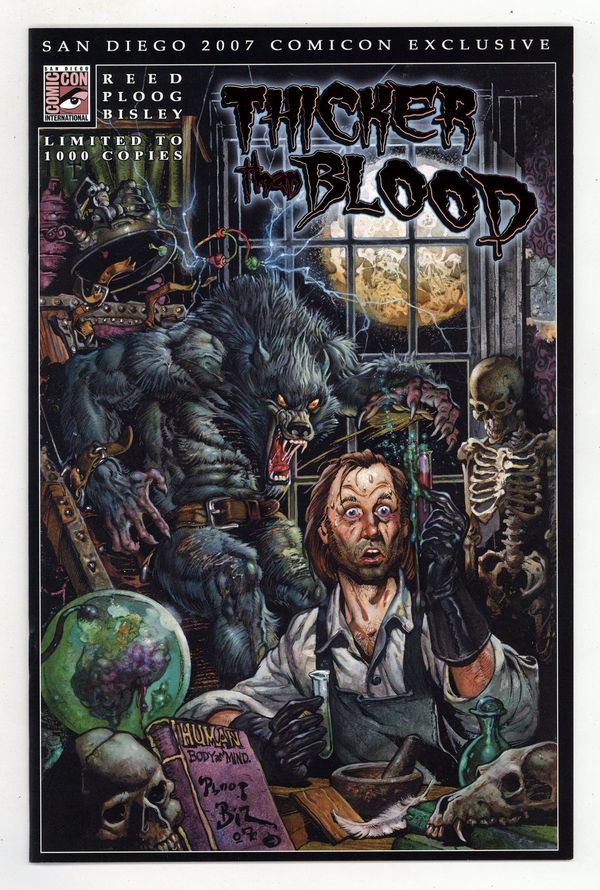 San Diego Comic Con Red Foil Variant. Limited to 1000 copies. Written by Simon Reed. Art by Mike Ploog. Painted by Simon Bisley. Two brothers on a trek across Scotland find themselves faced with more than just a stroll across the Highlands. After travelling for miles, lost in the mist, they chance upon shelter not knowing what lay before them. The darkness descends and the moon rises, an invitation for all manner of creatures! This is a tragic tale of two brothers being in the wrong place at the wrong time, and how their lives were changed forever. The human spirit is thicker than blood, and this is their tale! 24 pages, full color. Mature Readers.
