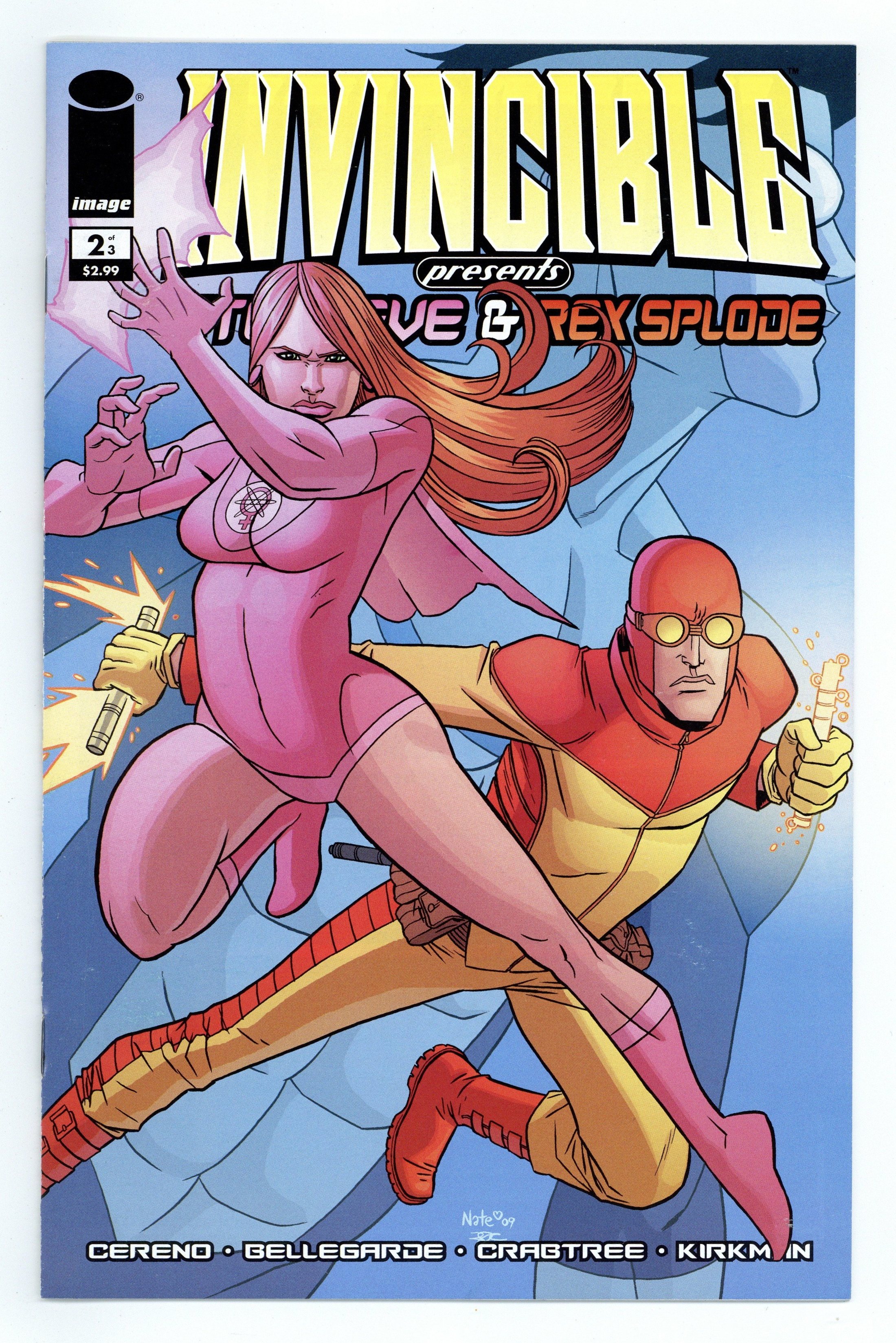 Written by ROBERT KIRKMAN. Art by NATE BELLEGARDE and BILL CRABTREE. Cover NATE BELLEGARDE and FCO PLASCENCIA. Picking up right where the first ATOM EVE miniseries left off! See the secret origin of Rex Splode! See what shaped him into the man who tragically sacrificed himself in the Invincible War. Witness his first meeting with Atom Eve and learn their stunning secret! 32 pages, full color. Cover price $2.99.