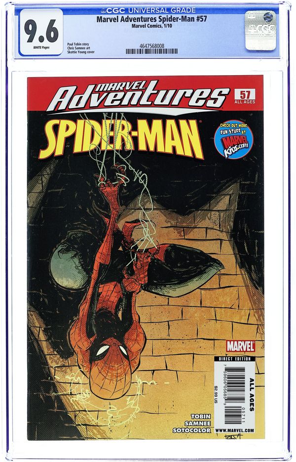 Written by PAUL TOBIN. Art by CHRIS SAMNEE. Cover by SKOTTIE YOUNG. Night is falling, and it's already been one LONG day for Peter Parker. Between Emma Frost coming into town, and a mysterious new supervillain, and his kind-of girlfriend Chat maybe being something other, or something more, than she's been pretending, Peter would love to call it a night. But when he finds out that Midtown High's newest teacher, Jack Russell, has been kidnapped along with a group of other people, it's up to Spider-Man to get Jack out of trouble, and away from the other hostages, and to do it FAST. Because Spider-Man has just received inside information that Jack Russell is a werewolf, and night's is falling. 32 pages, full color. ALL AGES Cover price $2.99.