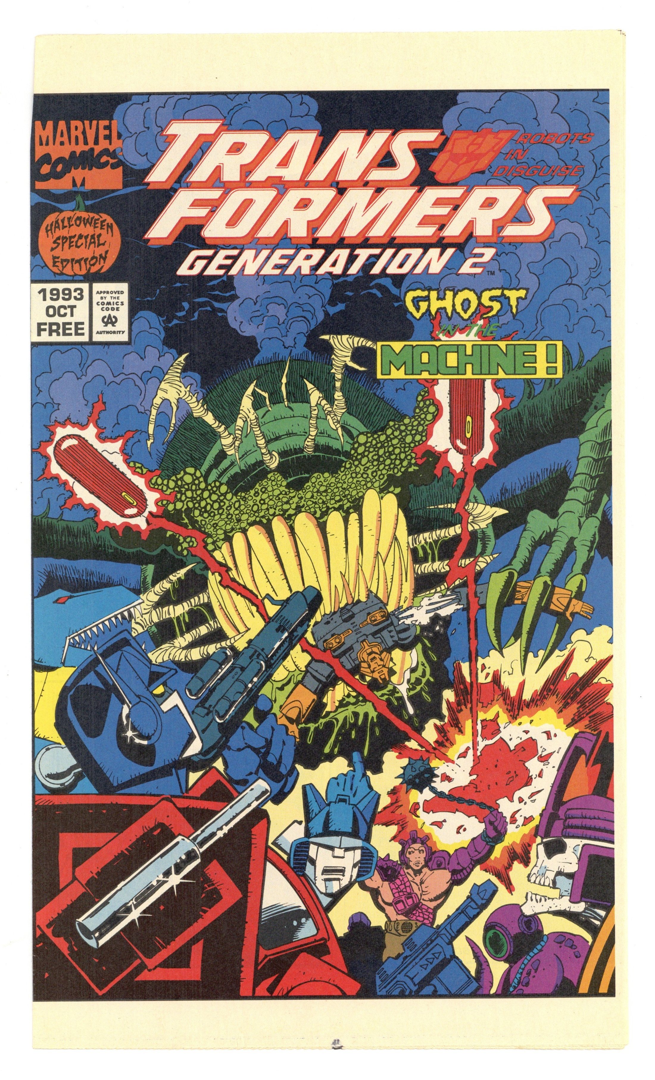 Promotional Special Edition comic. "Ghost in the Machine!" written by Simon Furman with art by Geoff Senior. 6-5/8" x 11-3/8", Full color, 8 pages (including covers), newspaper style binding, all newsprint stock.