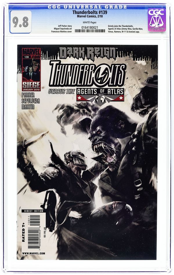 Written by JEFF PARKER. Art by MIGUEL SEPULVEDA. Cover by FRANCESCO MATTINA. Scourge and Ghost vs. Gorilla-Man and M-11, the Human Robot? Oh, it's on! A former ally has earned Norman Osborn's ire, and now he's sent his team of psychos to unearth-and kill-none other than The Agents of Atlas! Can the Thunderbolts take down the squad of '50s misfits, or will they destroy themselves first? That's right, writer Jeff Parker has brought his cult-fave team to town for a two-part throwdown...and when the dust clears, one T-Bolt won't be left standing! 32 pages, full color. Cover price $2.99.