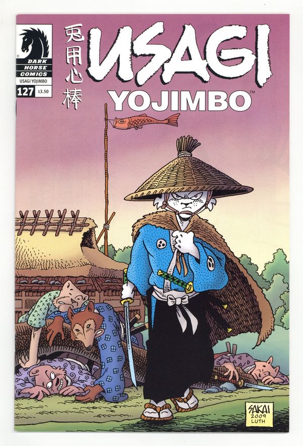 Published Mar 2010 by Dark Horse.$12.00Story and Art by Stan Sakai. The rabbit ronin joins a disgraced samurai on a tragic mission in this brand-new standalone tale! Since the kidnapping of Lord Masaki's son, clan retainer Inuyoshi has a tarnished reputation. The ransom was paid and the victim returned, but it was Inuyoshi's responsibility to protect Lord Masaki's son. Ordered to commit seppuku-ritualized suicide-to atone for his negligence, Inuyoshi has vowed to first recover the ransom, the Sword of Narukami. Usagi chooses to help Inuyoshi on his mission, but develops reservations, as success will mean death for Inuyoshi! Cover price $3.50.