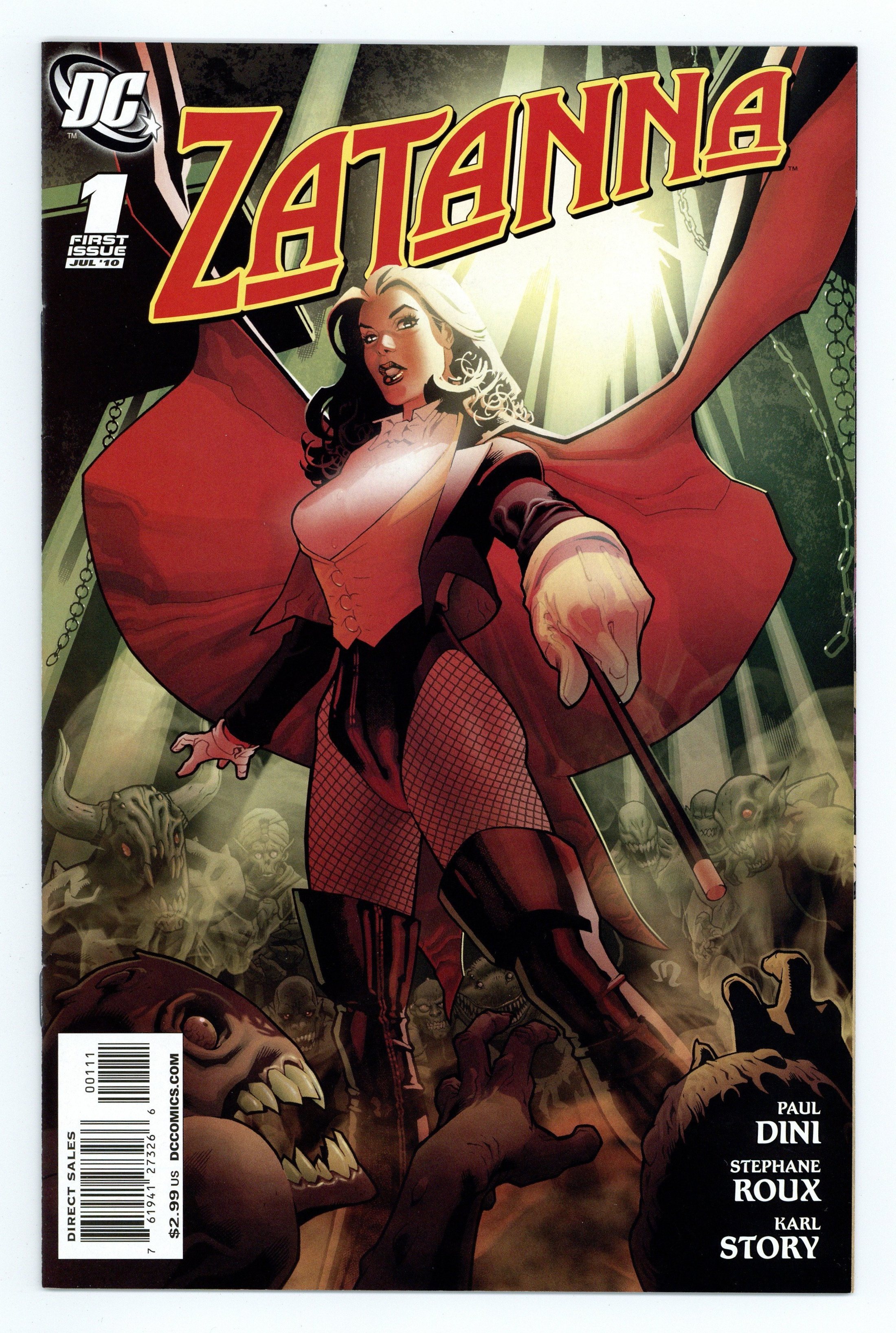 Cover by STEPHANE ROUX. Written by PAUL DINI. Art by STEPHANE ROUX and KARL STORY. At last - the Mistress of Magic in her own ongoing series! Zatanna Zatara has long made her home in San Francisco, but right under her nose a sinister threat has developed - a crime boss who dominates the criminal underworld with the dark powers of the magical underworld! The terrifying Brother Night is making his play for San Fran, and the police force - including hunky detective Dale Colton - turn to Zee for help. But Brother Night is a whole new kind of criminal and if Zatanna thinks she can backwards-talk him down, then she's in over her top-hatted head! Superstar writer Paul Dini (BATMAN: MAD LOVE) is paired with the gorgeous art of Stephane Roux (BIRDS OF PREY), making his anticipated DC debut on interior art! There's only one thing to say - T'NOD SSIM TI! Cover price $2.99.