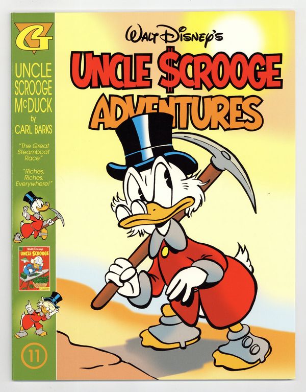 Cover by Carl Barks. Stories and art by Carl Barks and Geoffrey Blum. Gladstone presents classic Scrooge stories by Carl Barks and behind-the-scenes articles, originally factory bagged with a trading card. Scrooge is challenged by famous sportsman Horseshoe Hogg to complete a steamboat race that their uncles started in 1870. Scrooge takes Donald and the nephews prospecting in Australia in an effort to convince them that you can find wealth anywhere. Plus an article about the stories "Riches Riches Everywhere!" and "The Great Steamboat Race." Riches Riches Everywhere!; The Great Steamboat Race; Not So Ripping Yarns. NOTE: May or may not come with trading card. 8 1/2-in. x 11-in., 36 pages, Full Color. Cover price $8.95.