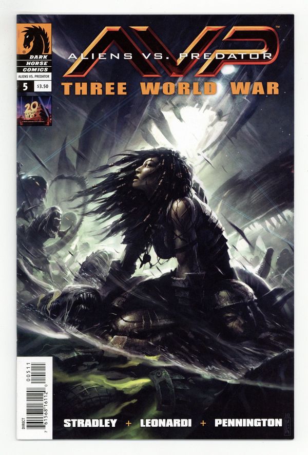 Tags: PredatorPublished Jul 2010 by Dark Horse.$17.50Written by Randy Stradley. Art by Rick Leonardi, Mark Pennington, and Wes Dzioba. Cover by Raymond Swanland. Whoever said 'War is Hell' didn't know the half of it. The Colonial Marines and their Predator allies look to take the fight to the enemy Predators and the Alien horde they control-but the daunting numbers of the bug swarm may be more than human and hunter can overcome. Their last hope may lie in the synthetic hands of the android David Sereda, who discovers the enemy's bug hatchery and a secret that may stem the deadly Alien tide-if he can survive long enough to tell the tale! 40 pages, full color. Cover price $3.50.