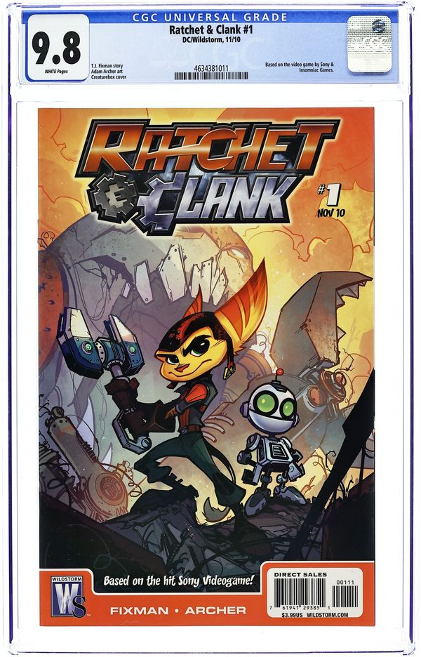 Written by T.J. FIXMAN Art by ADAM ARCHER Cover by CREATUREBOX The best-selling Sony franchise finally becomes an action-packed comic! With Dr. Nefarious defeated and the universe safe, galactic heroes Ratchet and Clank return to the Solana galaxy for some well-earned rest and relaxation. But when entire planets begin disappearing from the universe without a trace, Galactic President Qwark calls them back into action to solve the mystery. As the rest of the universe erupts in panic, the duo must embark on an epic adventure that will pit them against their most capable adversary to date: a Markazian planet thief named Artemis Zogg! 32 pg, FC Cover price $3.99.