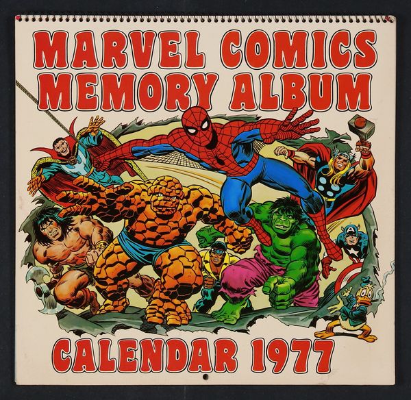 Tags: Collectible Calendar$38.00Year: 1977 - Memory Album Calendar - Hey there, true-believer, it's the Mighty Marvel Comics Calendar for the year 1977. Take a nostalgic trip back in time with your favorite heroes, villains, and monsters and revisit 1977. This calendar fills you in on holidays, runs down key events in Marvel history, and birthdays for some of the industry's biggest names. This is a wonderful item for any collector. Cover art by Jack Kirby and John Romita. January features the Fantastic Four with art by Jack Kirby and Joe Sinnott; February features Hulk and Namor drawn by Sal Buscema; March features Captain America with art by Jack Kirby and Frank Giacoia; April features Daredevil with art by Gil Kane and Joe Sinnott; May features Thor and Loki with pencils by John Buscema; June features Power Man with art by Ron Wilson and Joe Sinnott; July features Doctor Strange drawn by Gene Colan; August features Spider-Man with art by Ross Andru and Mike Esposito; September features the Avengers with art by George Perez and Joe Sinnott; October features Dracula with art by Gene Colan and Tom Palmer; November features Conan and Red Sonja with art by John Buscema and P. Craig Russell; and December features the Defenders with art by Sal Buscema. Softcover (Spiralbound), 11 1/2-in. x 10 1/2-in., 24 pages, full color.