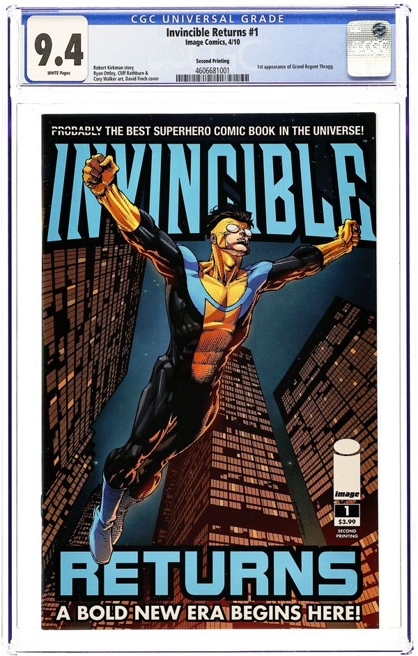SECOND PRINTING. Cover by David Finch. story ROBERT KIRKMAN art RYAN OTTLEY, CORY WALKER & FCO PLASCENCIA AT LONG LAST, INVINCIBLE RETURNS TO HIS ORIGINAL COSTUME! After the shocking events of the Invincible War and the cataclysmic battle with Conquest, Invincible is ready to turn the page to a bold new era: just in time for THE VILTRUMITE WAR, starting in next month's INVINCIBLE #71! This special self-contained issue will bring readers new and old up to speed on everyone's favorite superhero comic. If you've never read INVINCIBLE, now is the time to dive in! And if you've been reading since the beginning: You know it's all been leading up to this moment! Either way, hold onto your hats! 40 Pages, full color. Cover price $3.99.