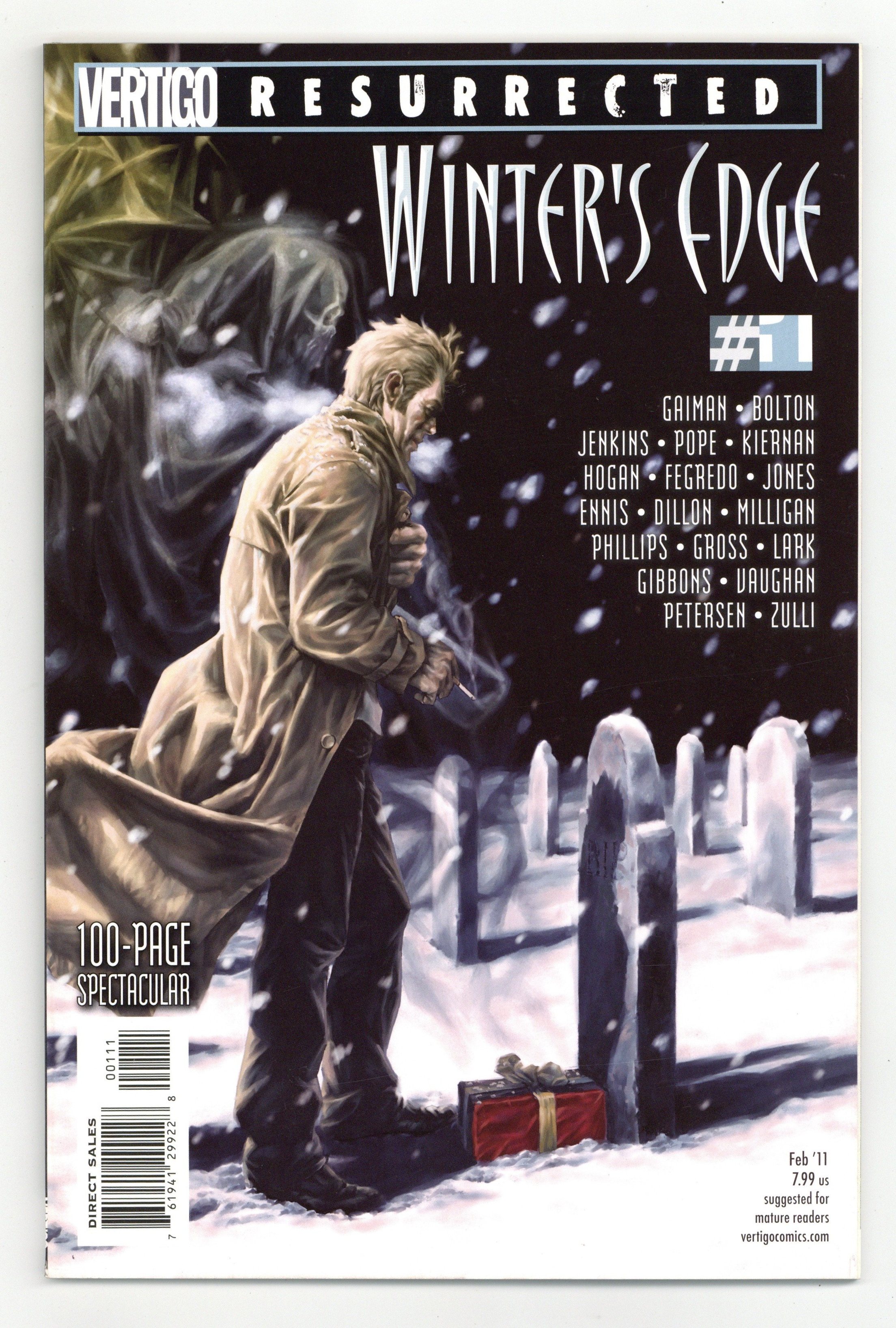 Published Feb 2011 by DC/Vertigo.$16.00Written by NEIL GAIMAN, BRIAN K. VAUGHAN, GARTH ENNIS and more Art by PAUL POPE, DAVE GIBBONS, SEAN PHILLIPS and more Cover by PHILIP BOND In time for the frigid depths of winter are ten previously uncollected short stories from the pages of VERTIGO WINTER'S EDGE - the timeless Vertigo title that featured comics' most select and sensational creators tackling the imprint's most enduring characters. Featuring The Endless, Swamp Thing, John Constantine and Tim Hunter in stories by Neil Gaiman (SANDMAN), Brian K. Vaughan (Y: THE LAST MAN), Dave Gibbons (WATCHMEN), Garth Ennis (PREACHER), Paul Pope (BATMAN: YEAR 100) and many, many more! On sale DECEMBER 1 ? 96 pg, FC Cover price $7.99.