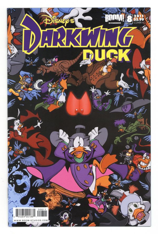Tags: Disney Ducks & MicePublished Jan 2011 by Boom Studios.$17.00Cover by James Silvani. Crisis on Infinite Darkwings: Part 4 of 4 - (W) Ian Brill (A) James Silvani It's the grand finale and shocking end that will leave you wanting more! No, not of the series, but just this arc! With The Crisis on Infinite Darkwings reaching its zenith, an old evil (and no, we're not talking Uncle Scrooge here people!) reemerges as the true source of St. Canard's terrible water troubles! Cringe as both hero and villain find themselves treading turbulent terror! Gasp as the Darkwing Ducks rally to turn the tide toward triumph! Run to pick up the exciting conclusion of Crisis on Infinite Darkwings! Cover price $3.99.