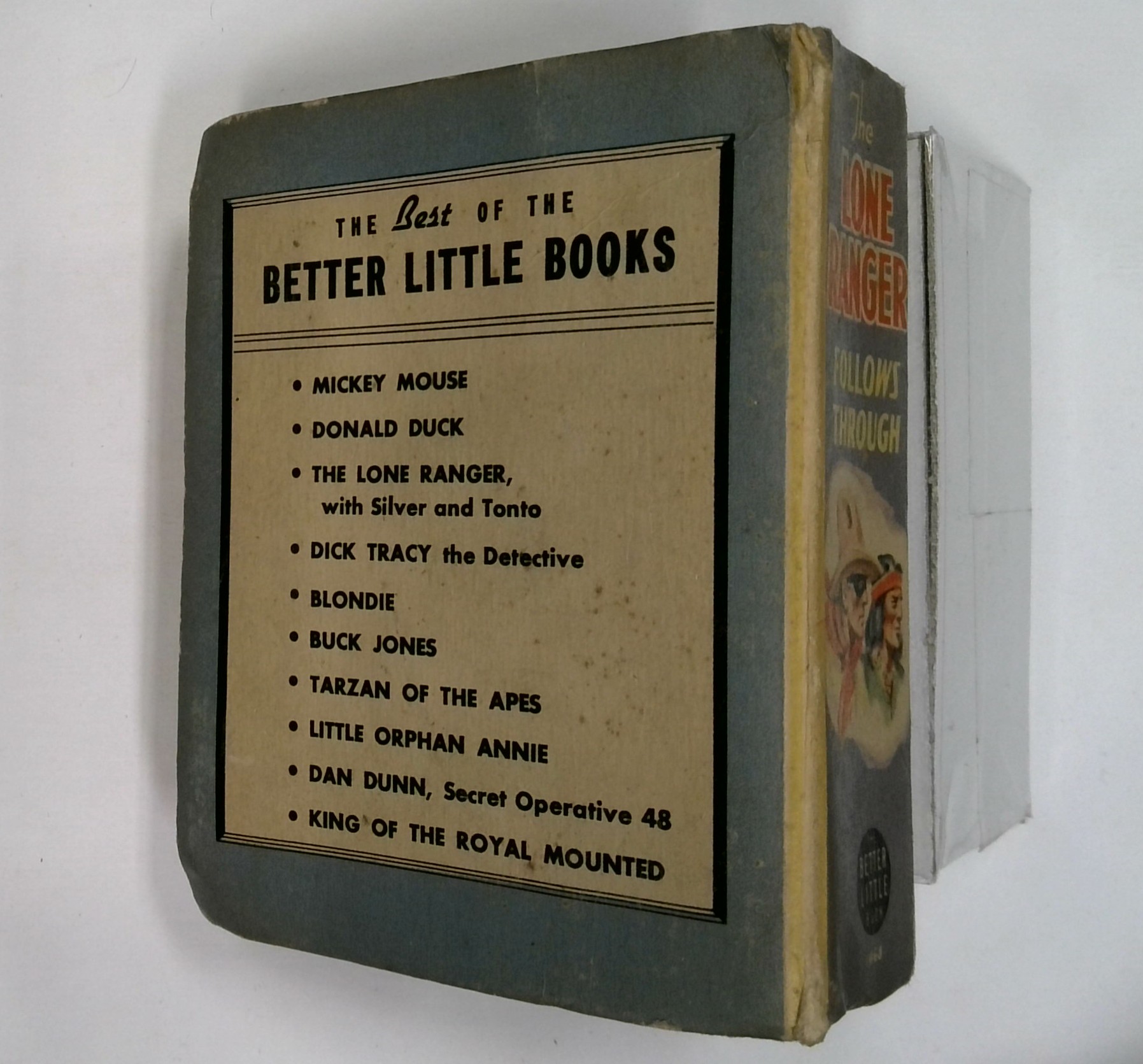 Lone Ranger Follows Through (1941 Whitman BLB) #1468, Co-starring Tonto and Silver! H.E. Vallely art. Hardcover; 3.5-in. x 4.5-in.; black and white; 432 pages.