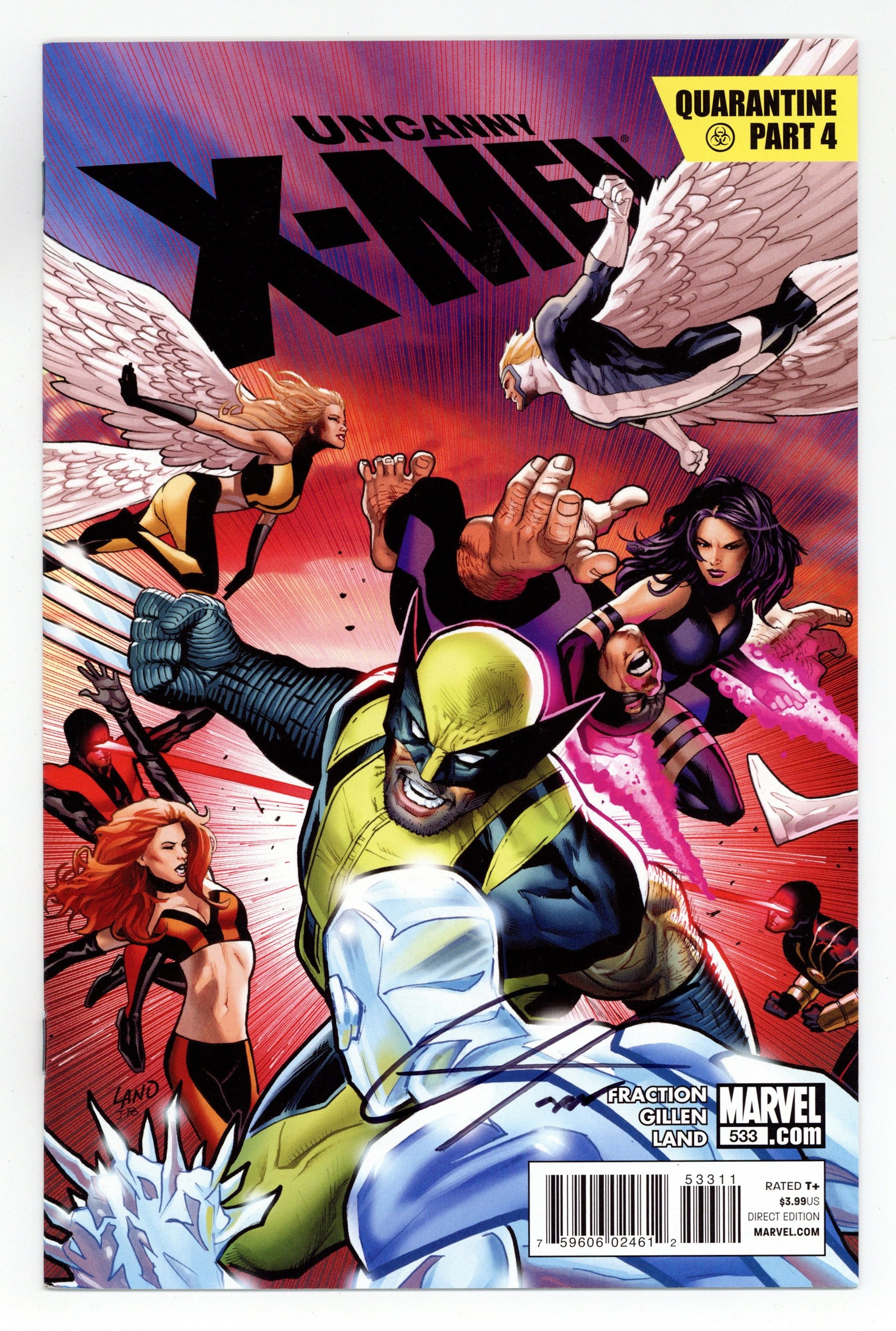 Written by MATT FRACTION & KIERON GILLEN Pencils & Cover by GREG LAND 'QUARANTINE' Part 4 (of 5)-The public gets what the public wants - and the public wants 'X-Men.' The Sublime Corporation is here to provide, at a cost. Both financially and for the safety of the entire world. It's the gala product launch that everyone will be talking about. If only the actual X-Men weren't dying of the power-sapping flu on Utopia so they could stop this. 36 PGS./Rated T+ Cover price $3.99.