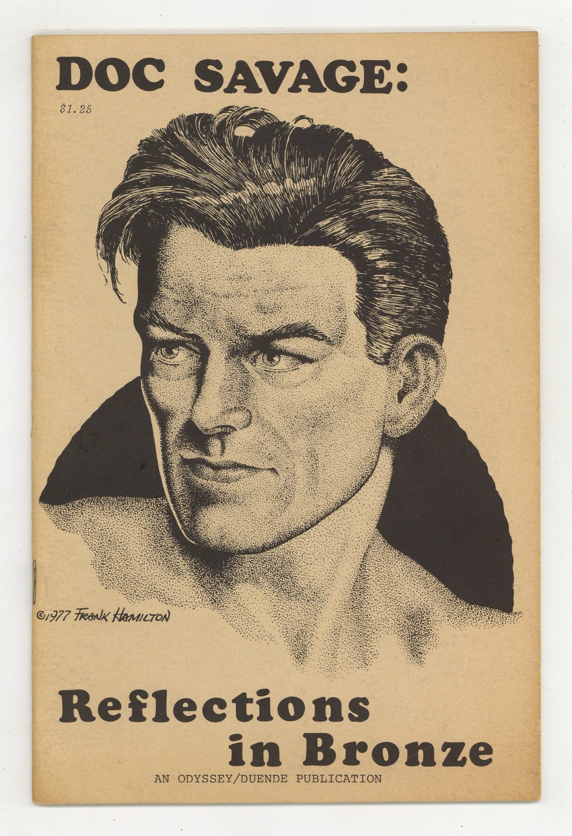 Published 1978 by Odyssey Publications.$29.00Chapbook featuring articles about the Man in Bronze: "Reflections in a Flake-gold Eye" and "TheGirl Who Loved Doc Savage" by Will Murray. 5.5-in. x 8.25-in.; black and white; 24 pages on good paper stock with cardstock covers. Frank Hamilton covers. Cover price $1.25.
