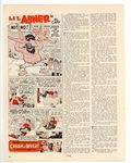 Half-page ad by Al Capp featuring Li'l Abner and the gang. Copyright 1945. Measures 5.25 in. x 14 in. or 4.75 in. x 11.5, depending upon the magazine that published the ad. Black and white plus red spot-color.