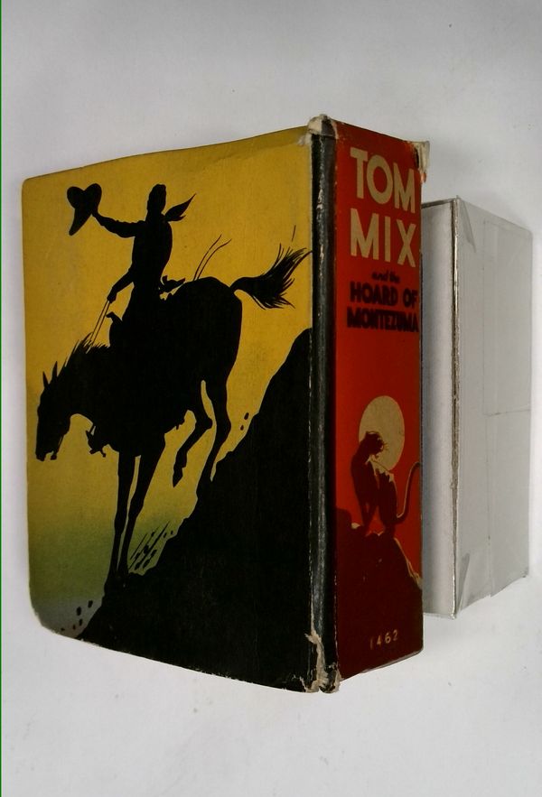 Tom Mix and the Hoard of Montezuma (1937 Whitman BLB) #1462, H.E. Vallely art. Hardcover book; 3.5-in. x 4.5-in.; black and white; 432 pages.