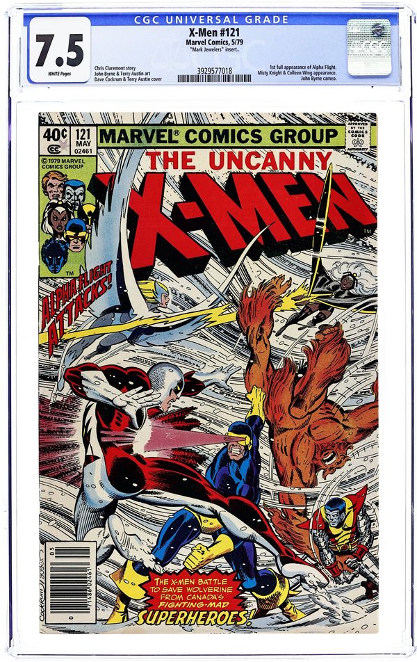 Mark Jeweler Advertisement Insert Variant. "Shoot-Out at the Stampede!" Part 2 of 2. Guest-starring Alpha Flight (1st full appearance). Story by Chris Claremont and John Byrne. Art by John Byrne and Terry Austin. It's no holds barred super-hero tussle as the Uncanny X-Men square off with Canada's premier super-hero team, Alpha Flight. And hanging in the balance, the fate of Wolverine. NOTE: 1st full appearance of Shaman, Aurora, Northstar, Snowbird, and Sasquatch. Cover price $0.40.