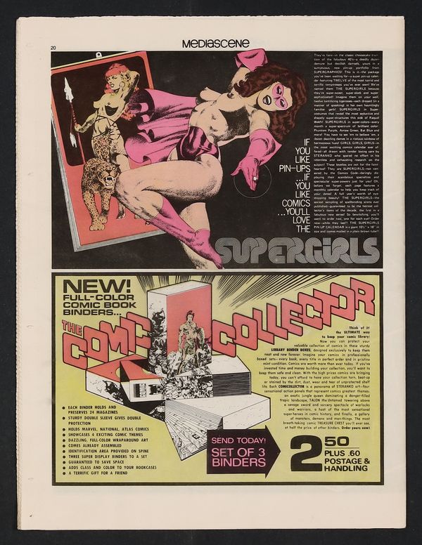 Published May 1979 by Supergraphics.$17.00Jim Steranko's fine zine covering popular entertainment. Tabloid newspaper format (all issues come folded) but on good quality white paper stock. Special pin-up issue. Caroline Munro cover and photo feature, the comic girls (part 1) by Steranko, Star Trek, Rocky Horror Picture Show, art of Virgil Finlay. Comics news. 36 pages in two sections; partial color. Cover price $1.75.