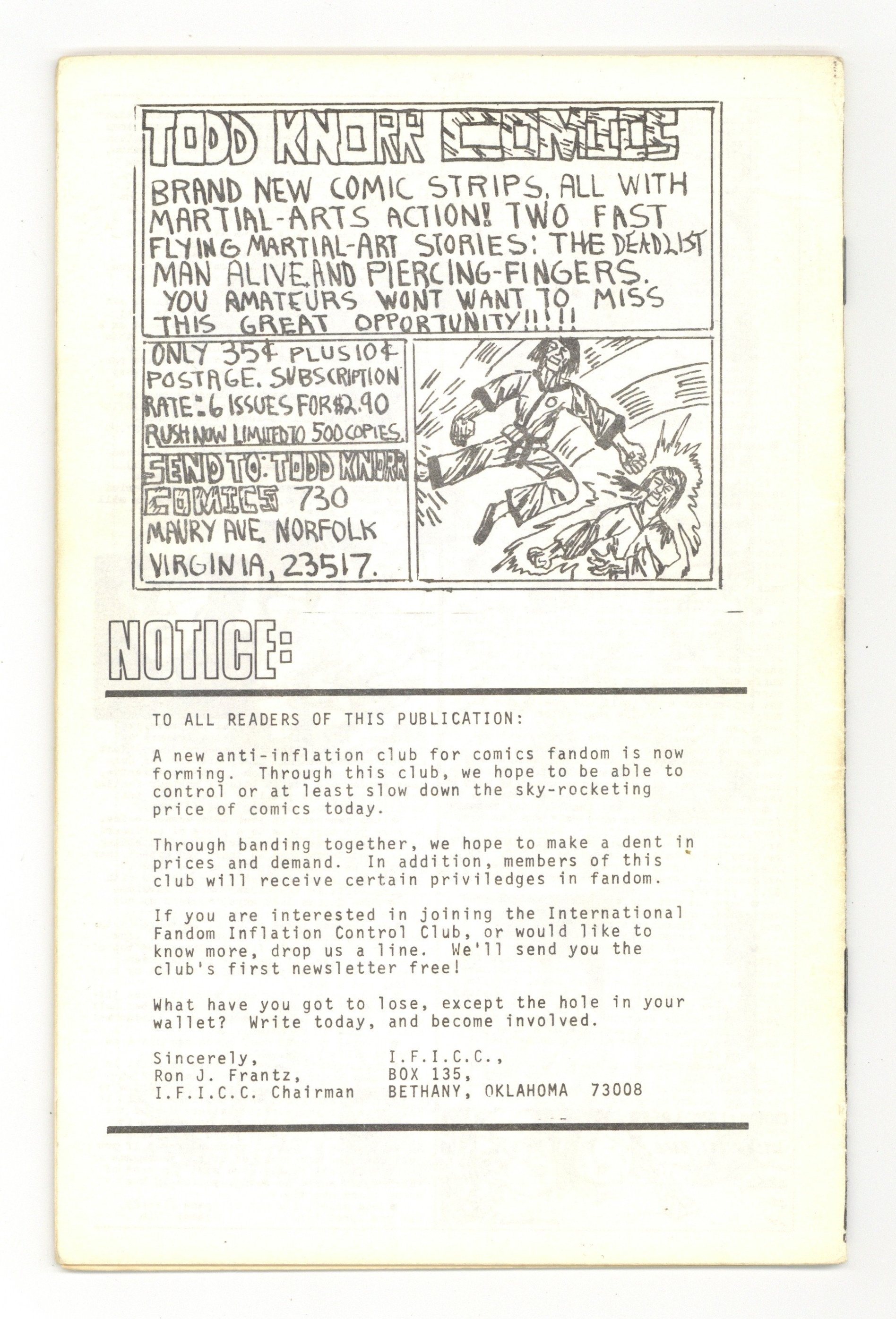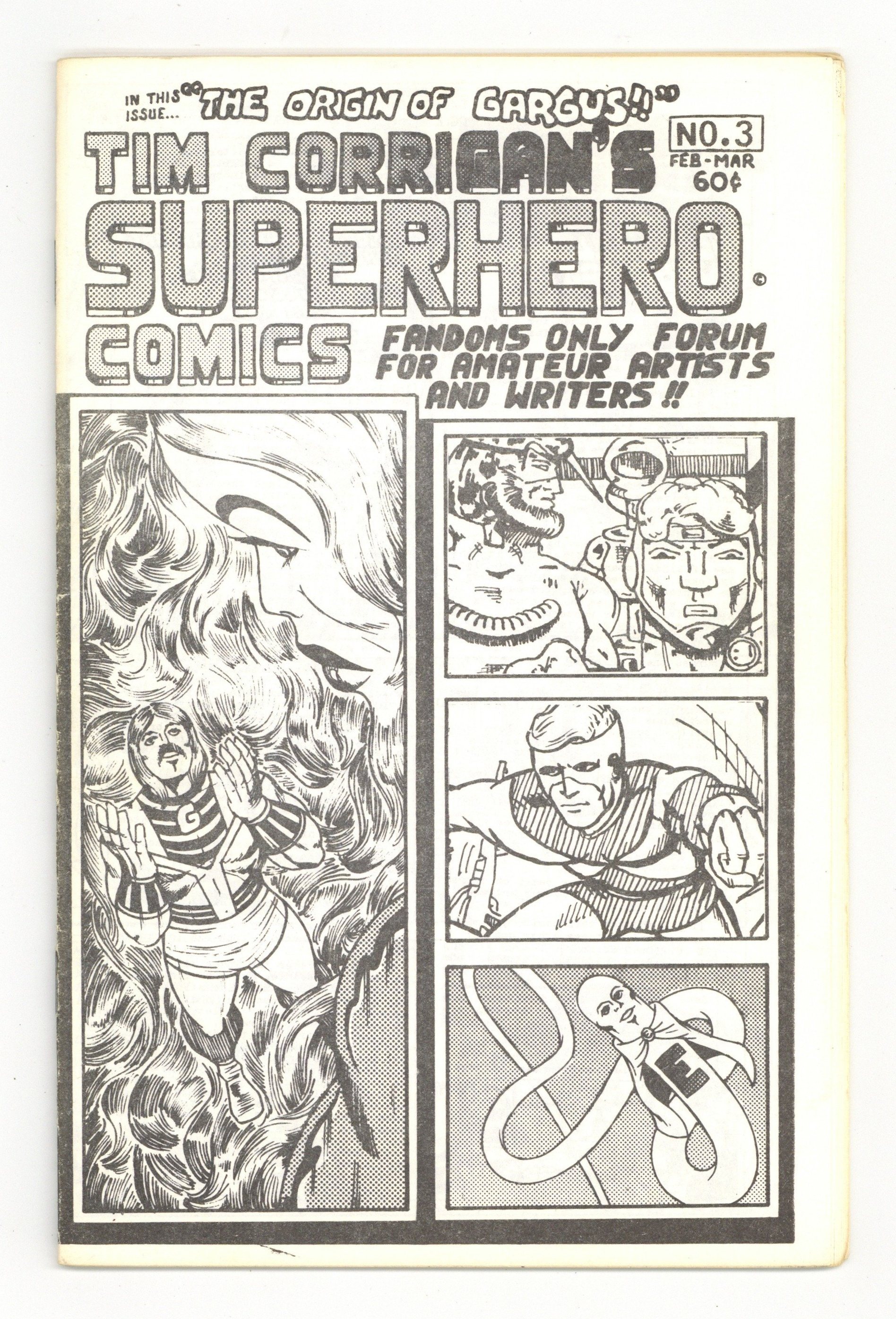 Published Mar 1975 by Tim Corrigan.$60.00Comics written and illustrated by Tim Corrigan, whose art is highly influenced by Jack Kirby. In this issue: "The Origin of Gargus" and "The Origin of Elasticworm." Also "The Titan Wars" by Karl Kesel and "The Protector" by Charley Parker. 5.5-in. x 8.5-in.; black and white; 32 pages. Cover price $0.60.