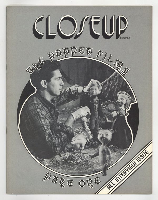 The Puppet Films, part one. Includes interviews with: Lou Bunin, Lee Howard, Don Sahlin, Kermit Love, Teddy Shepard, Evalds Dajevskis, andRichard Catizone. The longest interview was with Don Sahlin, likely due to the Muppet connection. 8.5" x 11", 48 pages, B&W. Cover price $1.50.