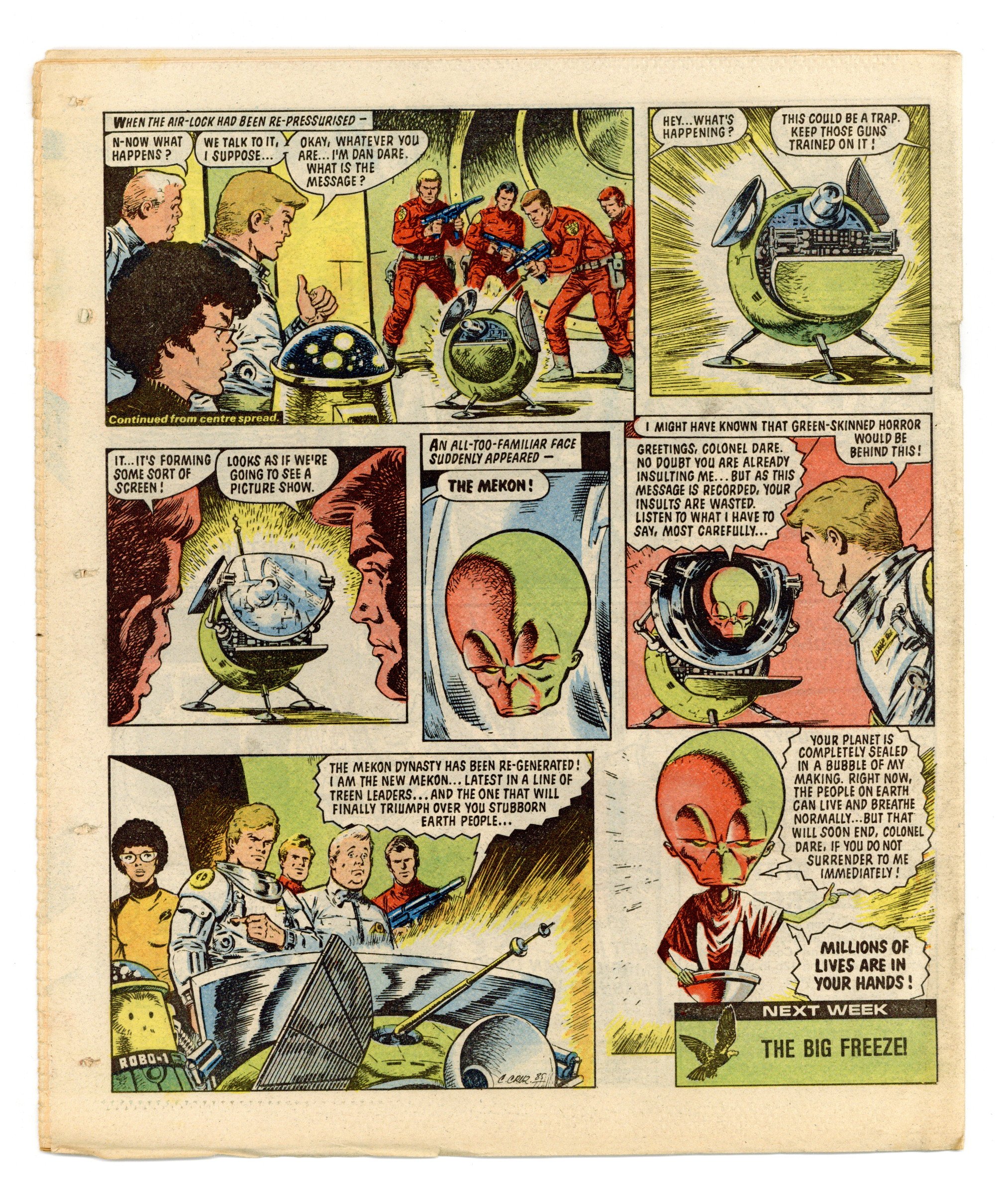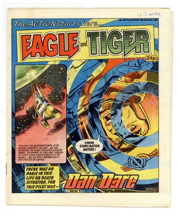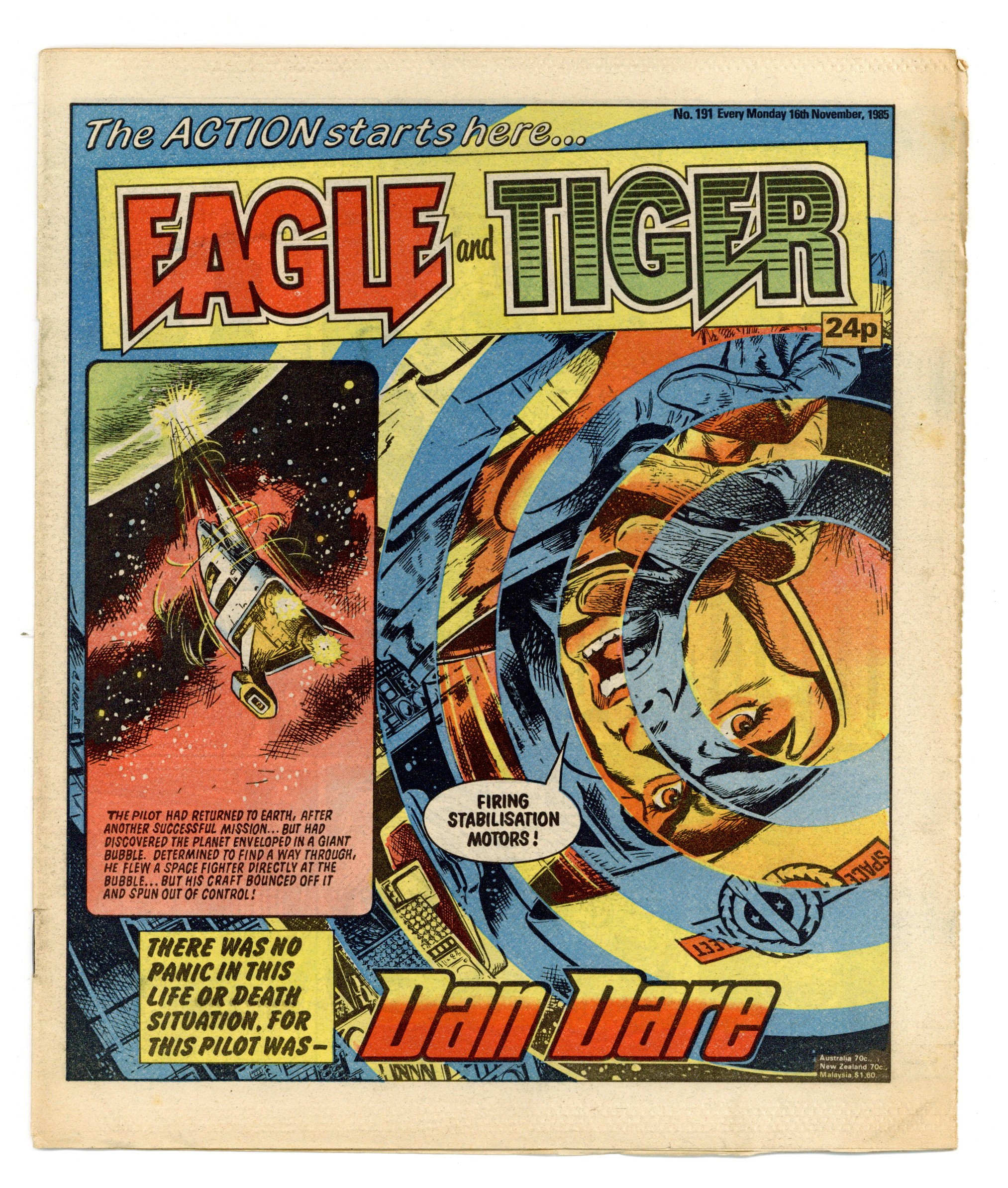 Nov. 16, 1985. "Eagle and Tiger" on cover. Dan Dare, plus other features. Published in the United Kingdom, 8-1/2-in. x 11-1/2-in, 32-pages including cover, all newsprint stock. Mix of color and black/white interior.