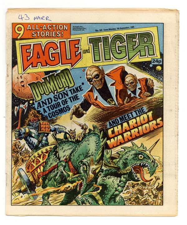 Sept. 7, 1985. "Eagle and Tiger" on cover. Dan Dare, plus other features. Published in the United Kingdom, 8-1/2-in. x 11-1/2-in, 32-pages including cover, all newsprint stock. Mix of color and black/white interior.