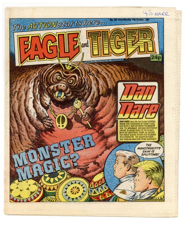 Oct. 19, 1985. "Eagle and Tiger" on cover. Dan Dare, plus other features. Published in the United Kingdom, 8-1/2-in. x 11-1/2-in, 32-pages including cover, all newsprint stock. Mix of color and black/white interior.