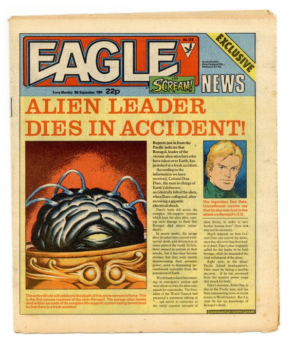 Sept. 8, 1984. Dan Dare, plus other features. Published in the United Kingdom, 8-1/2-in. x 11-1/2-in, 32-pages including cover, all newsprint stock. Mix of color and black/white interior.