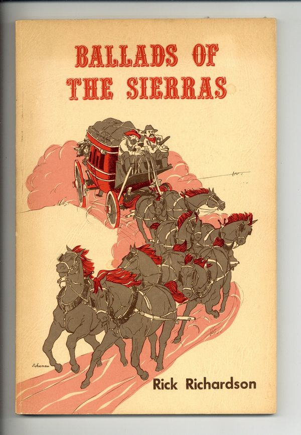 Published 1975 by Rick Richardson.$13.50First Edition - 1975. Written by Rick Richardson with cover and interior illustrations by Larry Schuman. Collects ten narrative poems about the California gold rush. 6" x 9.5", 60 pages, B&W