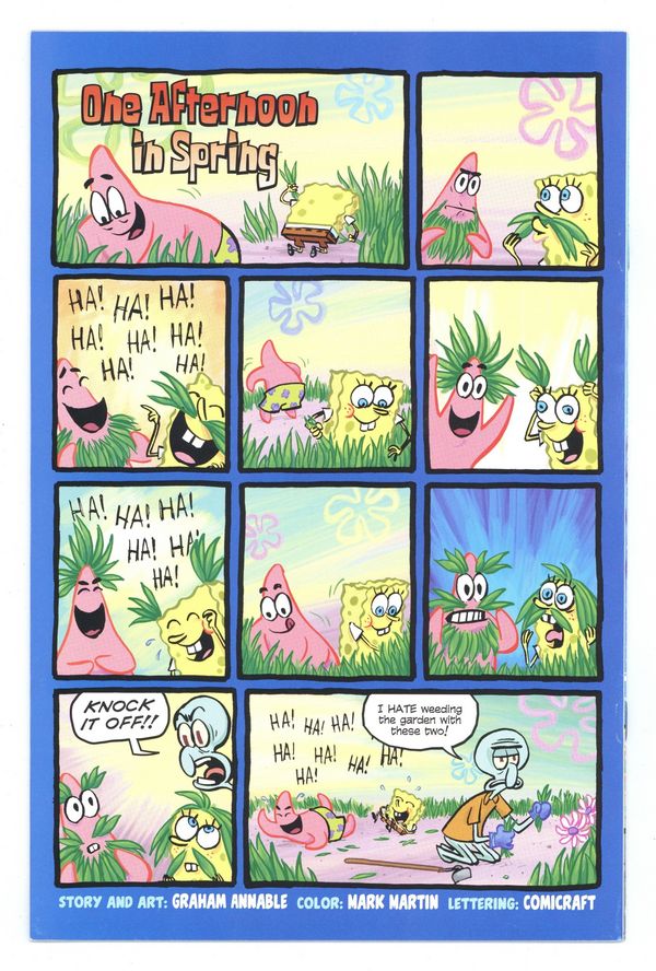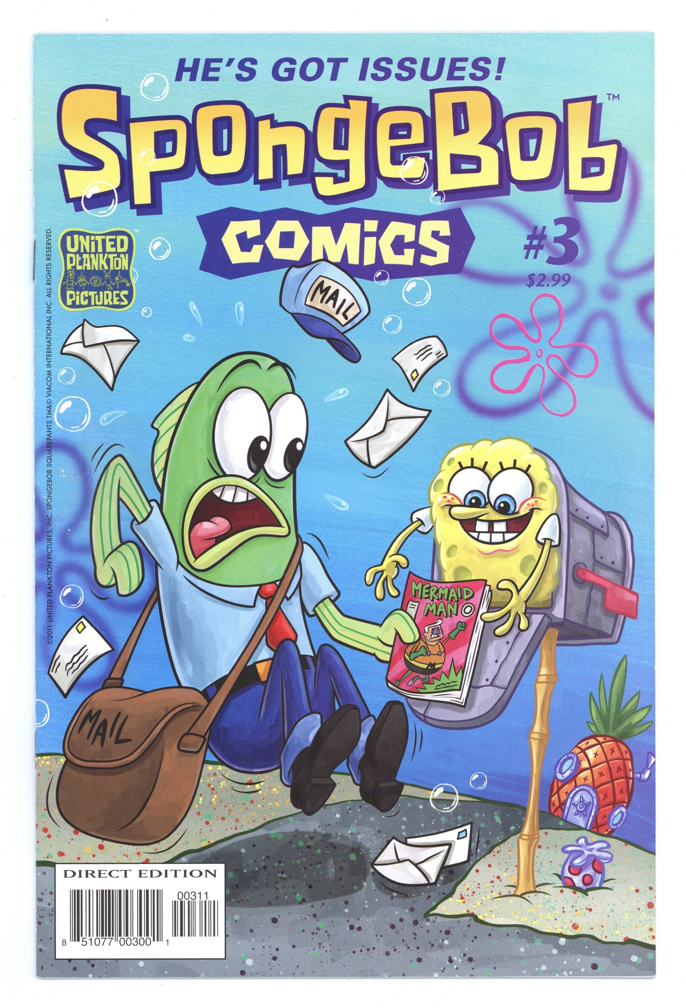 Published Jun 2011 by United Plankton Pictures.$42.00(W/A) Various Legendary Silver Age artist Ramona Fradon (Metamorpho, Plastic Man) lends her talents to a Mermaid Man and Barnacle Boy story as SpongeBob gets Squidward hooked on comics! Also: a view into how Patrick's mind 'works,' Gary's career as a Krusty Krab intern, a pin-up by SpongeBob creator Steve Hillenburg, and more. Cover price $2.99.