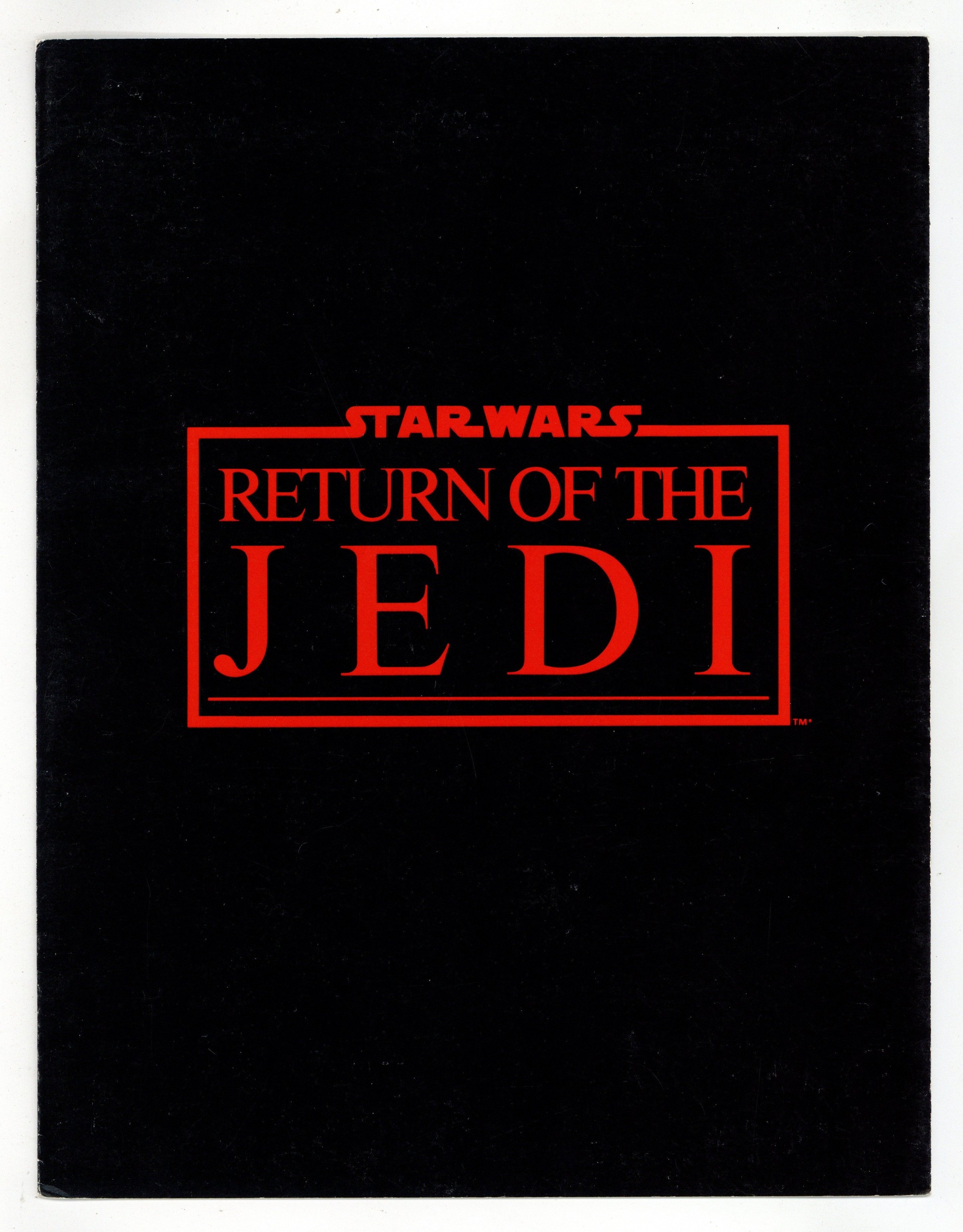 Published 1983 by Twentieth Century Fox.$27.00Program booklet for special screenings of Star Wars: Return of the Jedi early in its 1983 run. Fold-out booklet contains the complete credit list. No photos or illustrations. 8.5-in. x 11-in. (folds out to 33.5-in. x 11-in.); black and white; card stock.