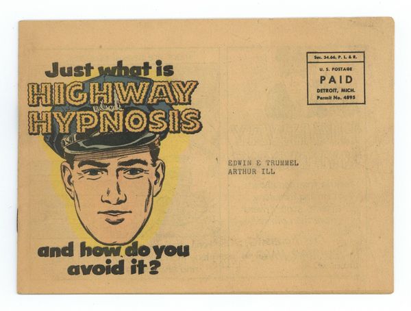 Published 1954 by Dodge Motor Co..$41.00Highway Hypnosis (circa 1954) is a promotional mini comic published by Dodge Motor Co. Learn the causes of highway hypnosis and how you can avoid it's dangerous effects. Also see how coffee has evolved over the years. 16 pages, full color, 7-in x 5-in.