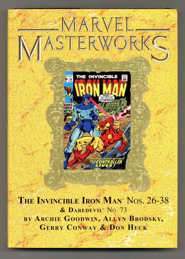 Volume 165 - 1st printing. "Iron Man: Book 7!" Collects Iron Man (1968-1996 1st Series) #26-38 and Daredevil (1964-1998 1st Series) #73. Written by ARCHIE GOODWIN, GERRY CONWAY, MIMI GOLD and ALLYN BRODSKY. Art by DON HECK with GEORGE TUSKA and GENE COLAN. Cover by MARIE SEVERIN. Iron Man's original artist, Don Heck, returns for another dose of Armored Avenger action! And what adventures he'll take you on - starting with a trip to the Dark Dimension courtesy of the Collector, followed by the villainy of the politically charged '70s stalwart Firebrand and a face-off with the Controller in a story also featuring the first appearance of Tony Stark's father, inventor Howard Stark! Revolution in Latin America, massive monsters and a mechanical visitor from outer space keep ol' Shellhead on his toes and you turning pages. But when the Spy-Master assembles an elite team with one objective - to destroy Stark Industries - the pieces for an Iron Man crossover classic come together. Only with the combined forces of Nick Fury, Daredevil and Madame Masque will our hero have a chance of overturning the Spy-Master and the power of the Zodiac Key. It's an adventure as only Marvel can make 'em! With the first appearance of Kevin O'Brien - a figure who will loom large in future - and the introduction, of course, of a lovely new lady in Tony Stark's life, it's Iron Man just as you like it. So reserve your copy today! Hardcover, 288 pages, full color. All Ages. NOTE: Limited to 960 copies. Cover price $54.99.
