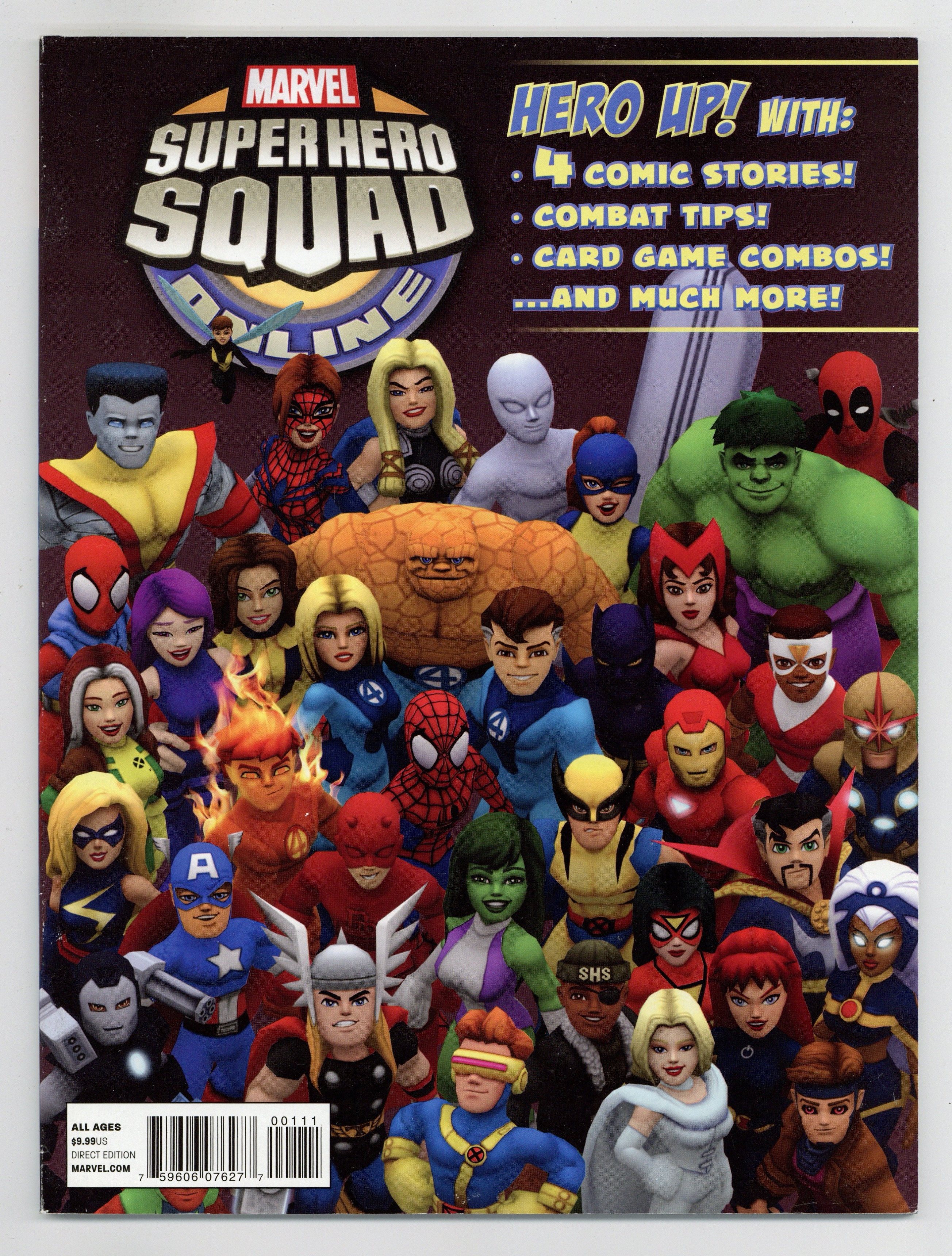 $12.00Written by TODD DEZAGO Penciled by MARCELO DICHIARA, DARIO BRIZUELA & LEONEL CASTELLANI You've read the comics, you've seen the hit TV series - now, prepare yourself to be part of the experience in Super Hero Squad Online! Join the nonstop adventure with your favorite Squaddies, and get the inside scoop on the upcoming massively multiplayer game in this mammoth magazine! Collecting SUPER HERO SQUAD ONLINE GAME: HERO UP! #1 and SUPER HERO SQUAD SPECTACULAR #1 - plus posters, games?and more! 104 PGS./Rated A Cover price $9.99.