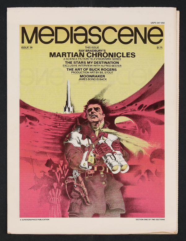 Published Apr 1979 by Supergraphics.$8.80Jim Steranko's fine zine covering popular entertainment. Tabloid newspaper format (all issues come folded) but on good quality white paper stock. Ray Bradbury's Martian Chronicles TV mini-series; Alfred Bester interview (The Stars My Destination), Buck Rogers art of William Stout; Moonraker; and more. Jim Steranko cover. Cover price $1.75.